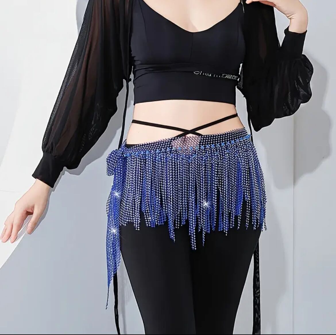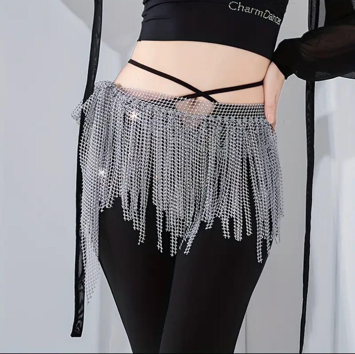 フィッシュネットにキラキラビジューが光るフリンジヒップスカーフ✨