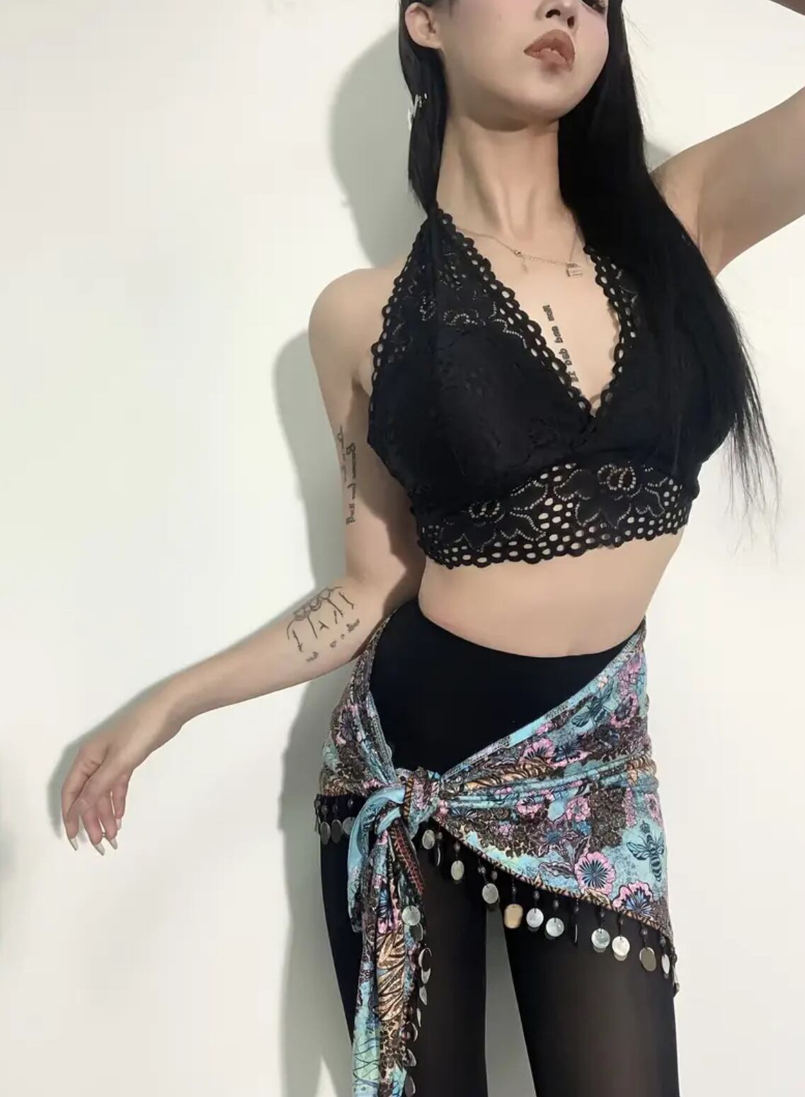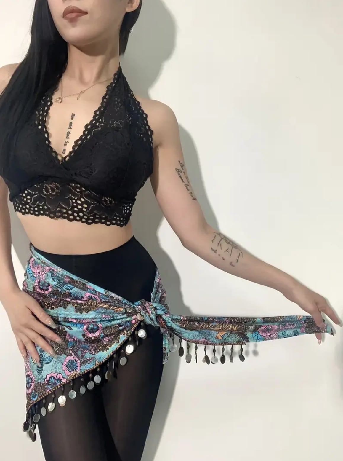 蝶とお花のプリントがエレガントなヒップスカーフ✨ 裾のフリンジもかわいい♡