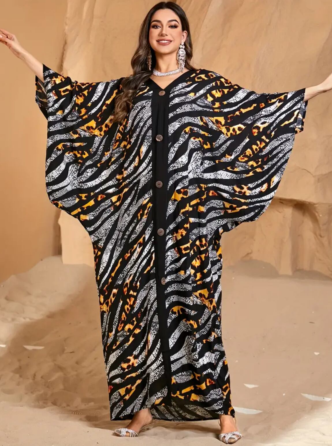 ヒョウ柄と、ゼブラ柄のような黒ストライプがミックスした斬新なデザイン❗️
