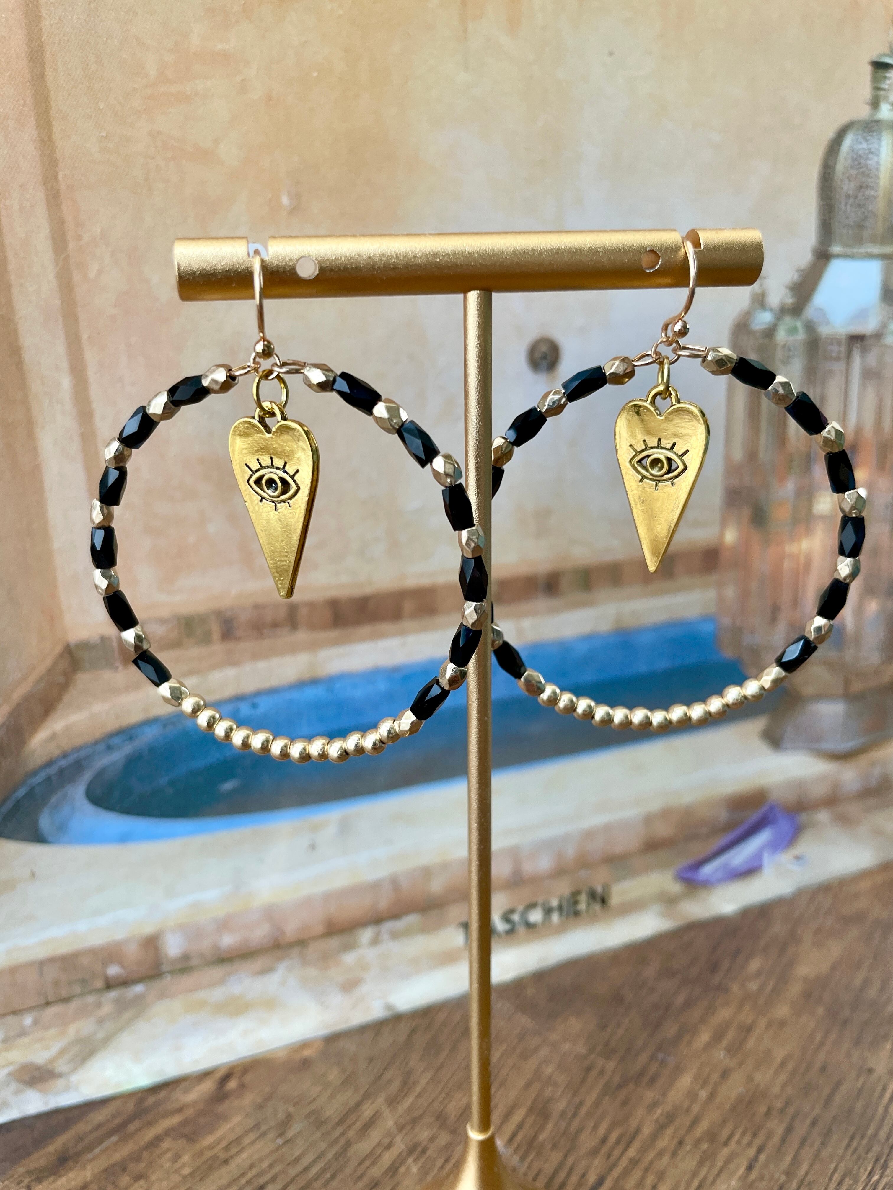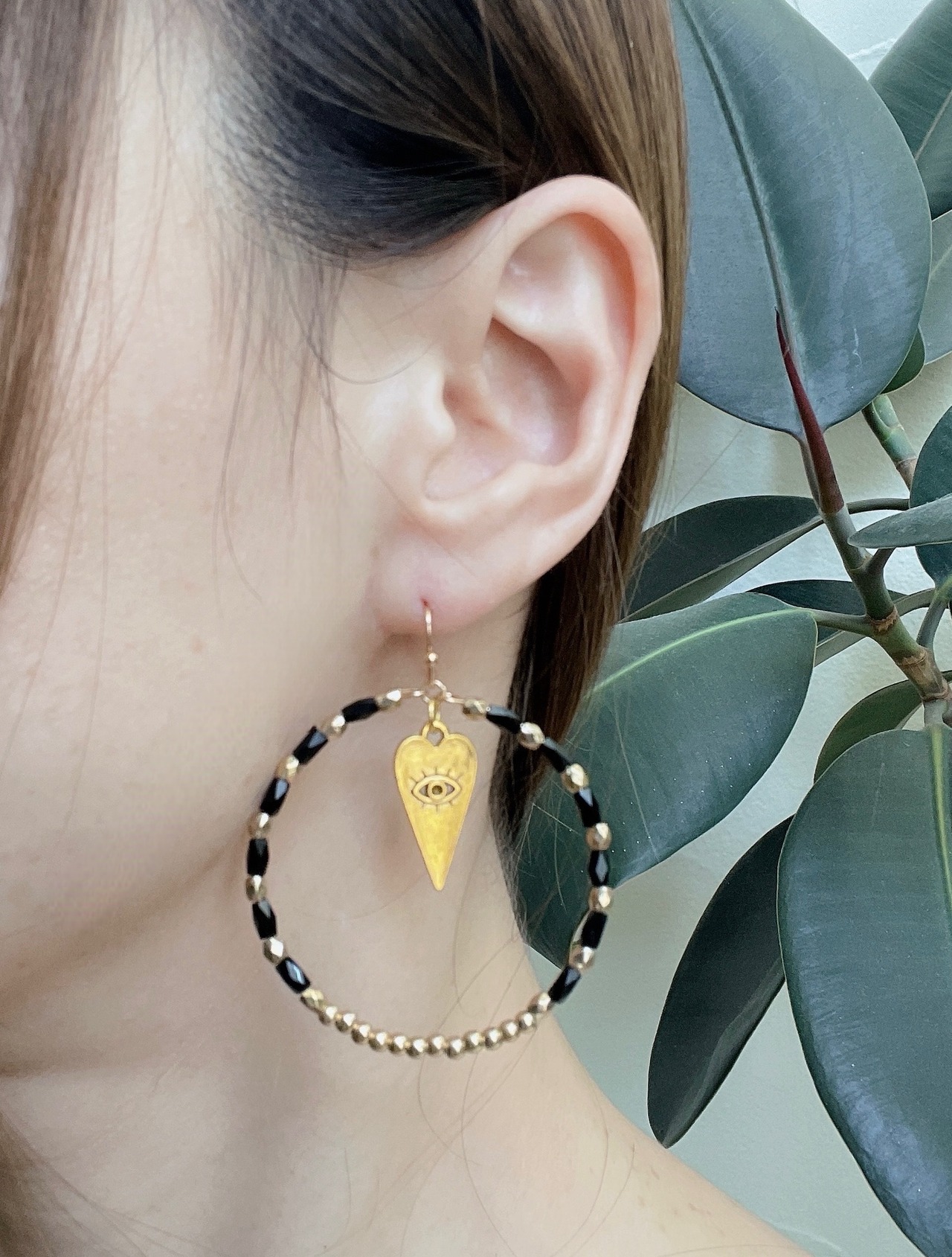 ゴールド✖️ブラック ハートのお目目ちゃん フープピアス/イヤリング