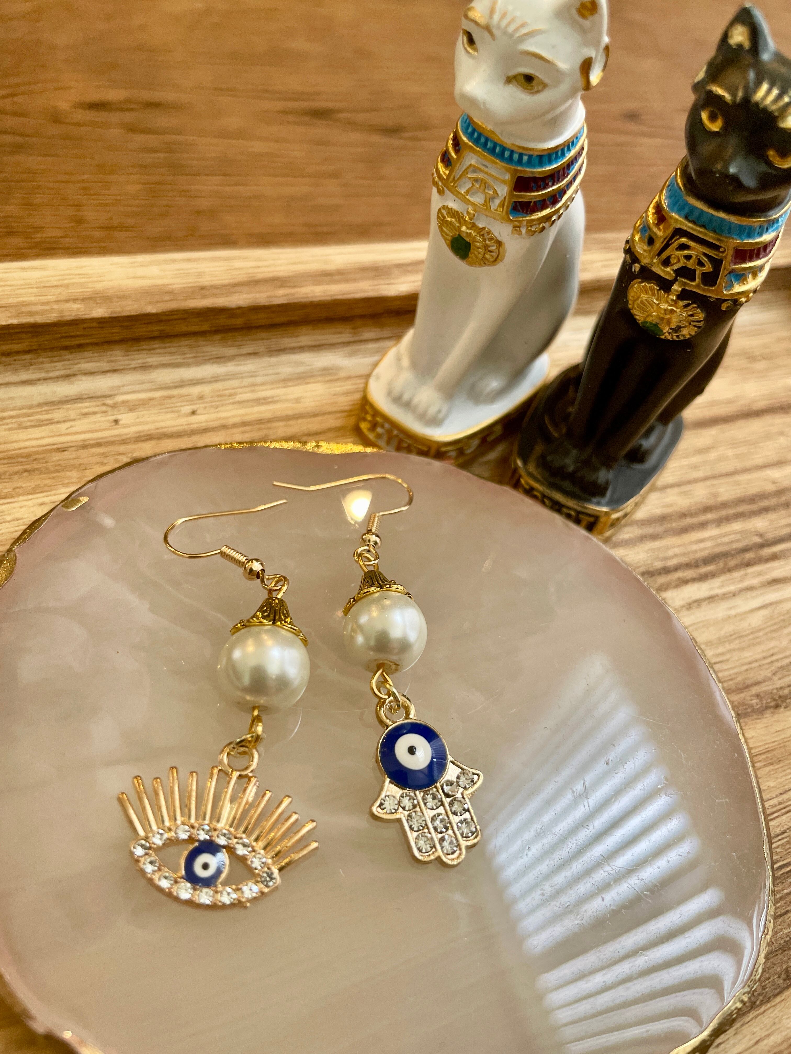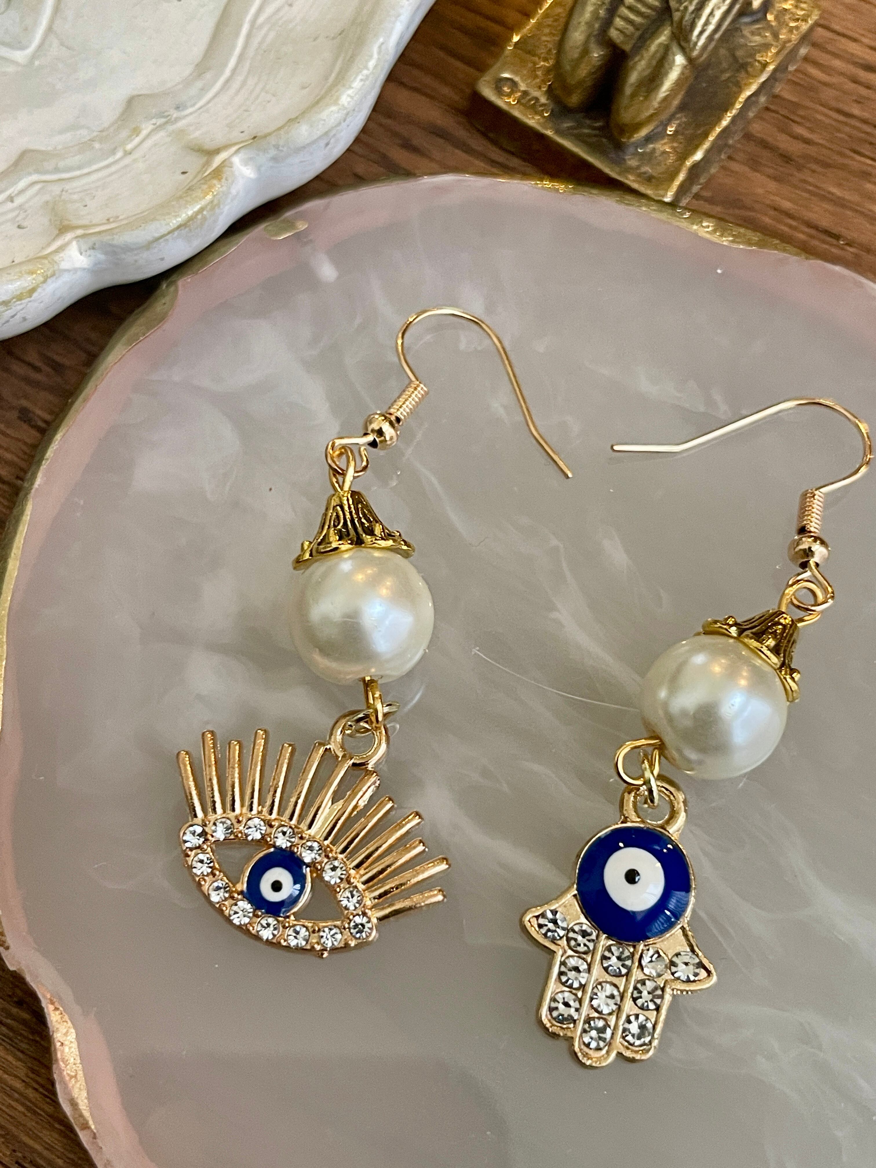 ハムサ&お目目ちゃん✖️フェイクパールの耳飾り