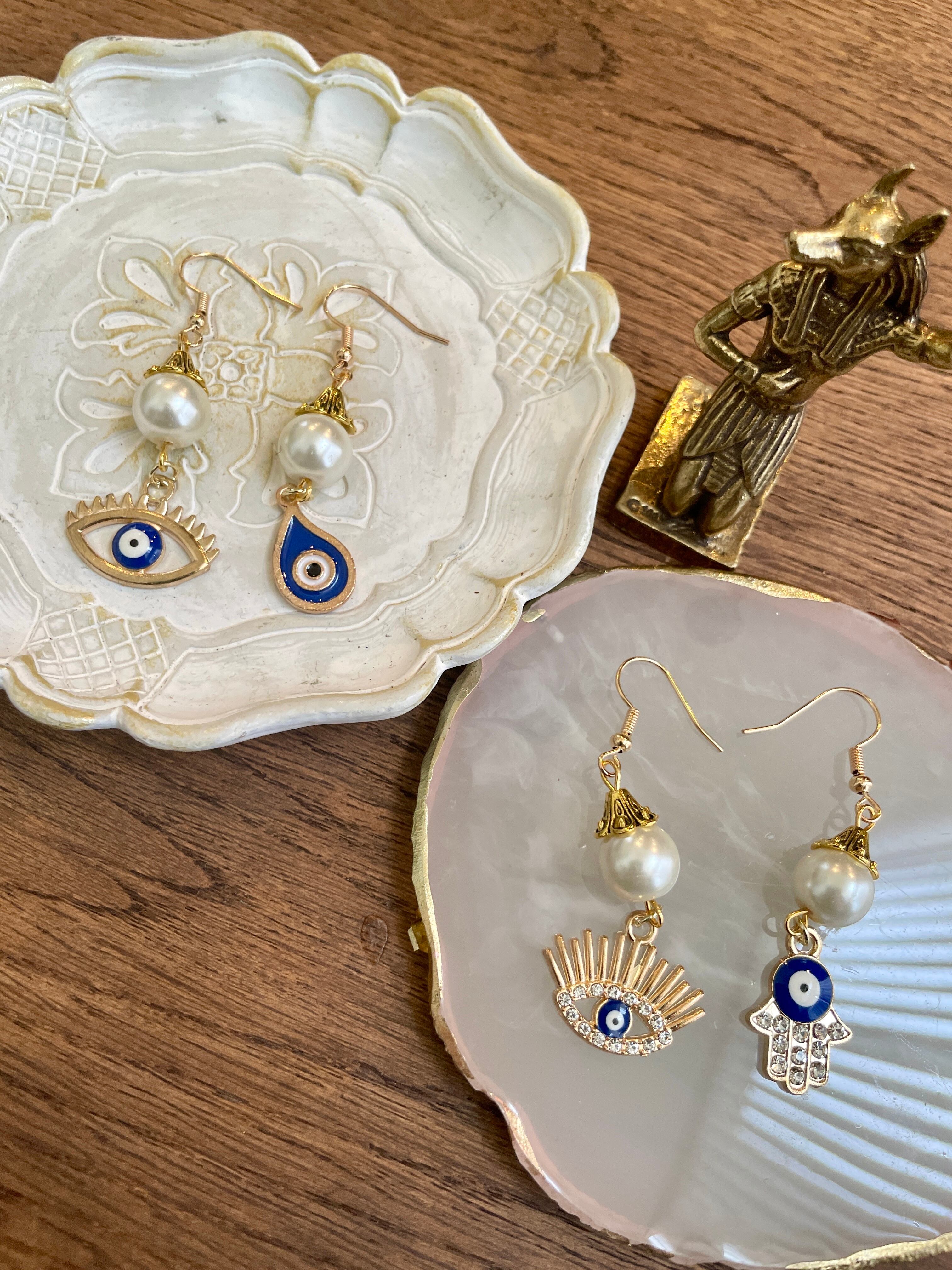 お目目ちゃんとナザール✖️フェイクパールの耳飾り