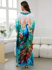 鮮やかな孔雀のプリントが華やかなガラベーヤ✨