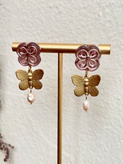 ちょうちょの真鍮パーツを合わせたロマンティックなピアス✨