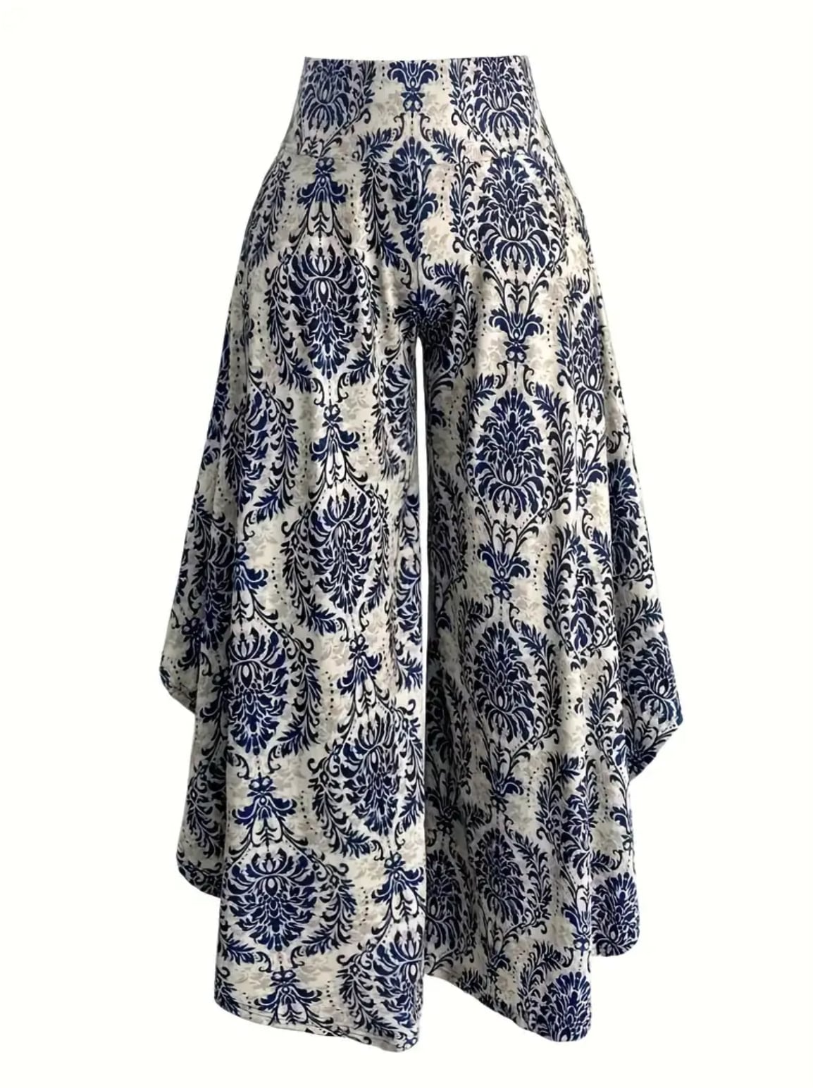 ホワイト✖️ブルーのダマスク柄がノーブルで爽やかなワイドパンツ✨