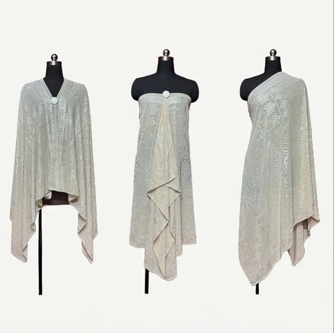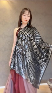 柔らかくなめらかなニット生地にアシュート柄がプリントされたショール。(透け感なし。)