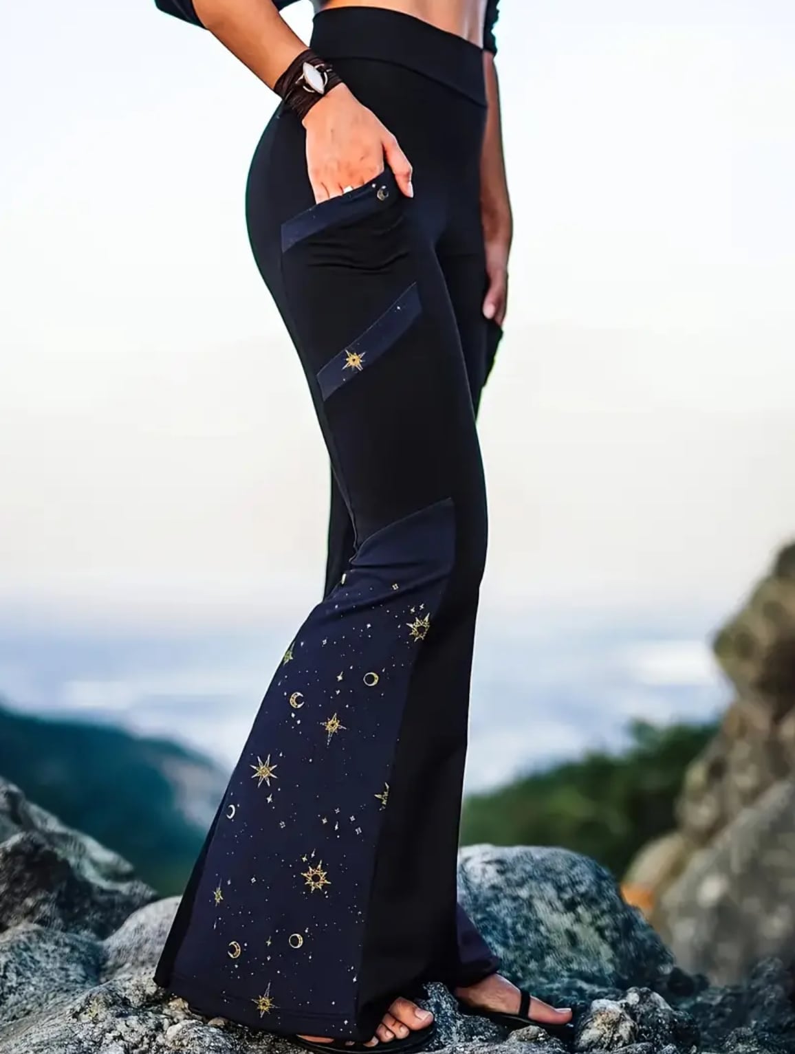 サイドのポケットと裾に 星や月が煌めく夜がデザインされたロマンティックなパンツ✨