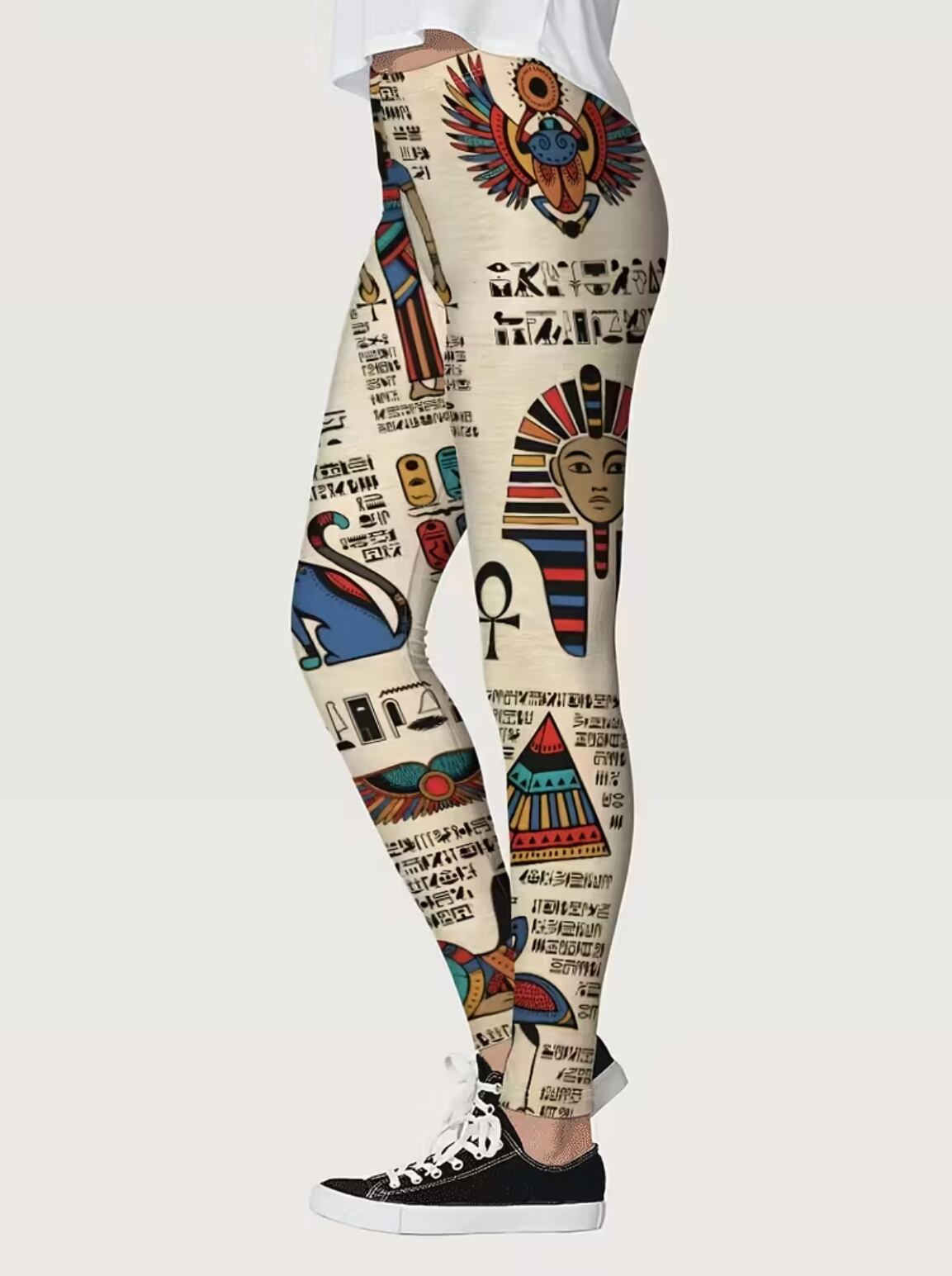 ファラオやピラミッドなどエジプトの象徴がデザインされたカラフルなレギンス✨