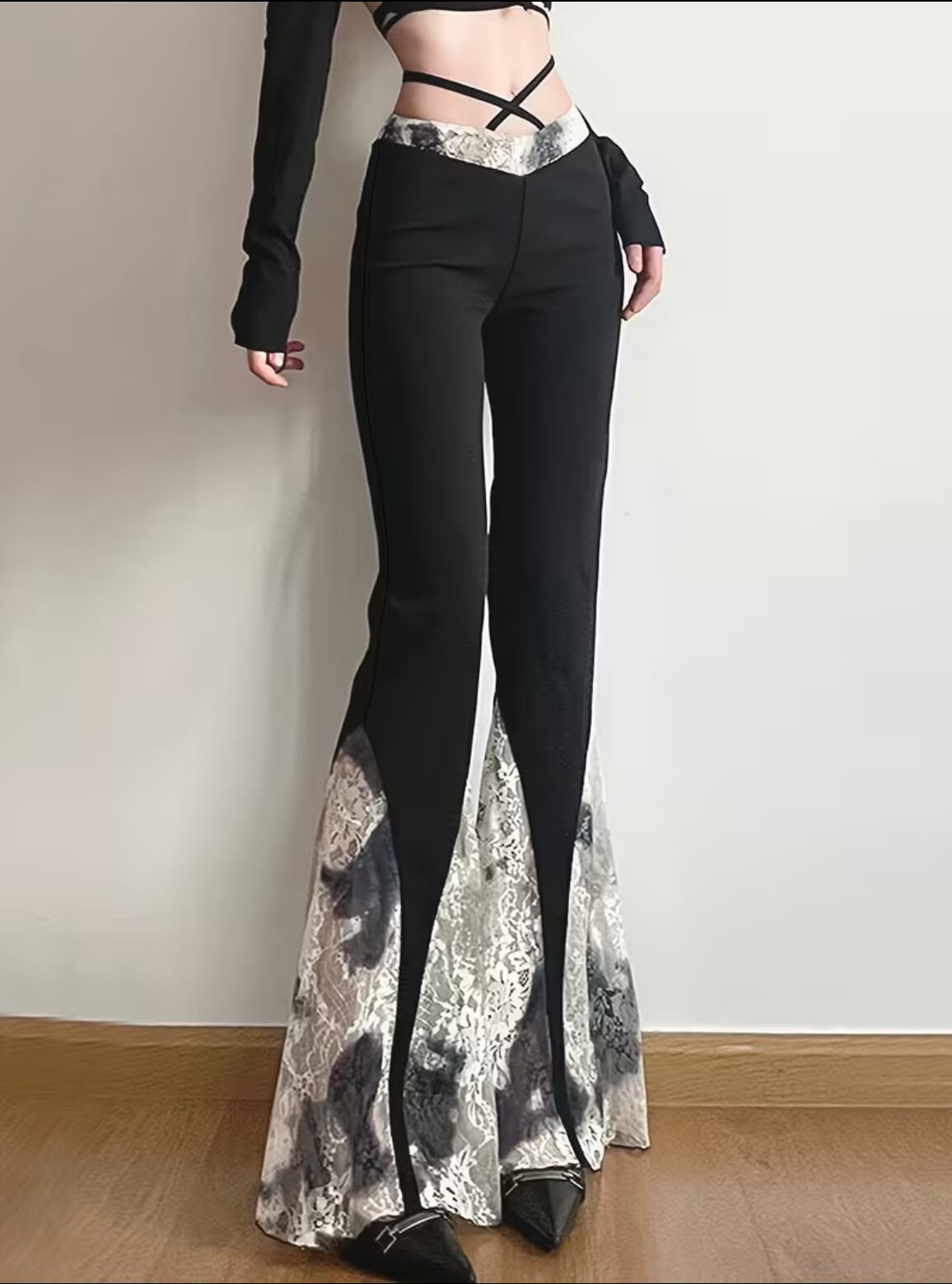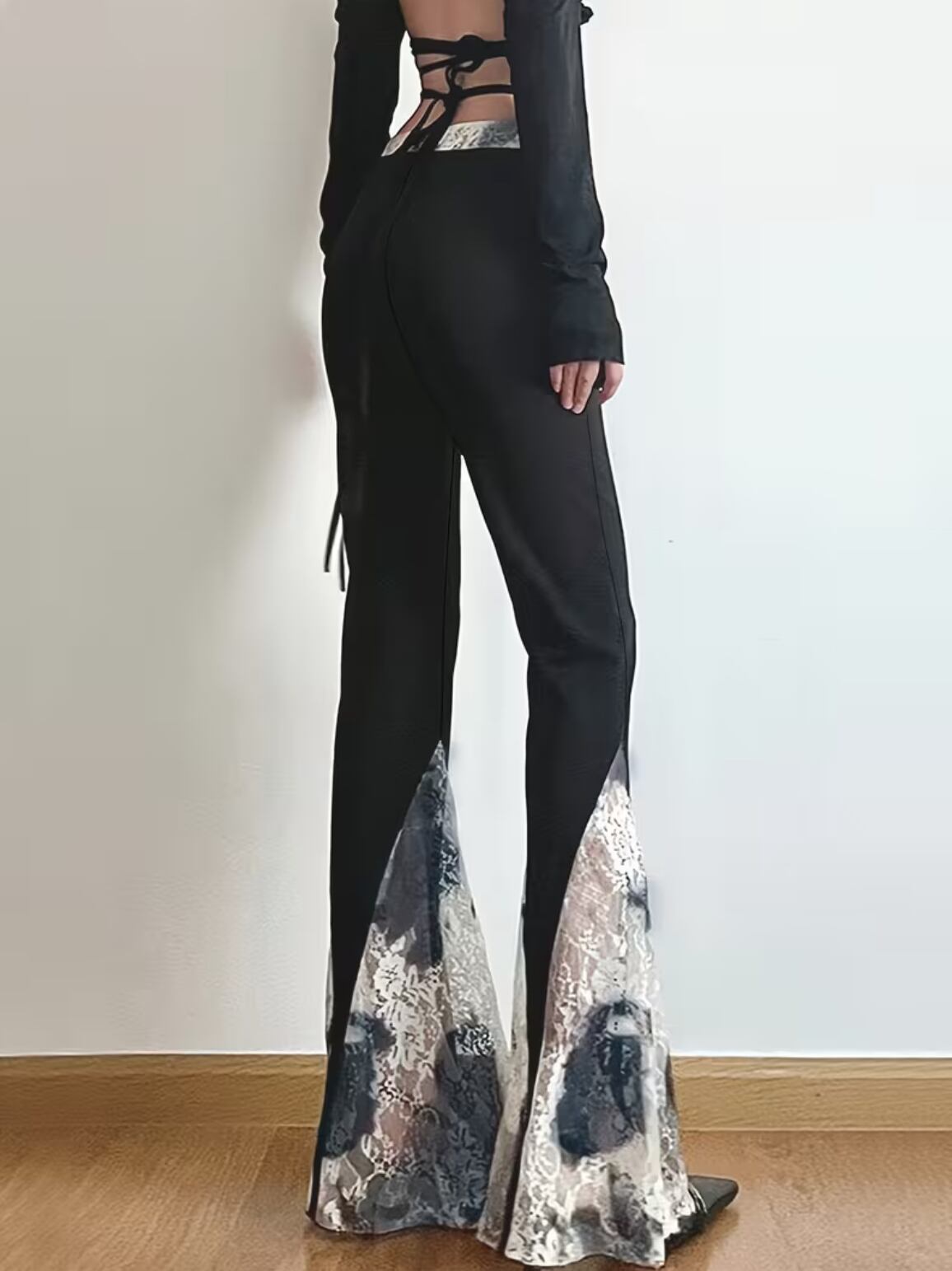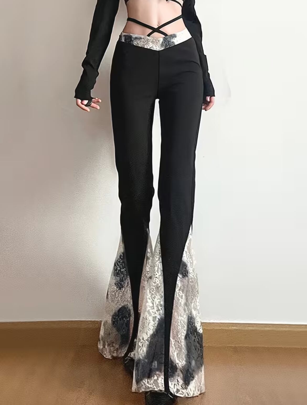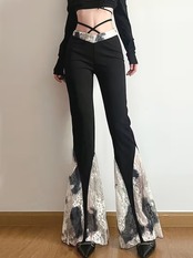 黒✖︎白 のレース使いが可愛いフレアパンツ