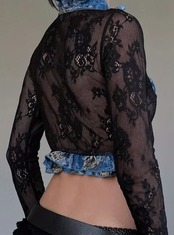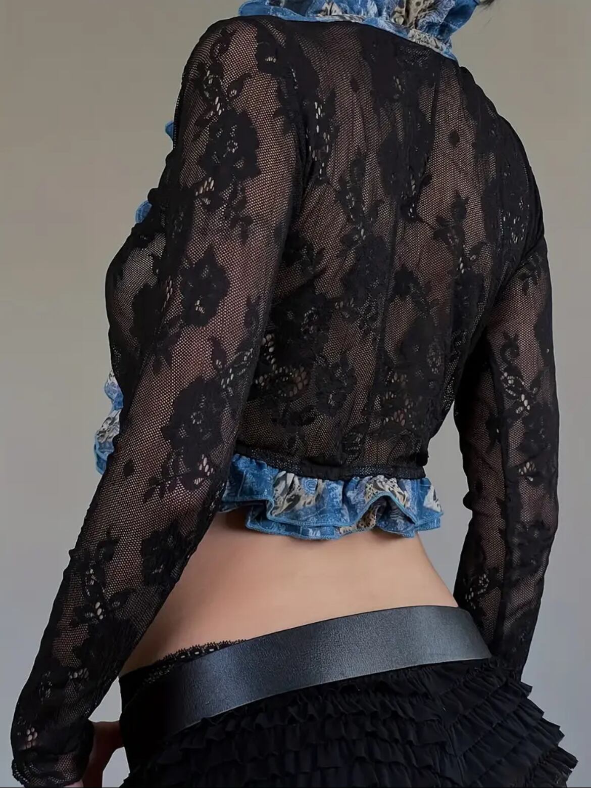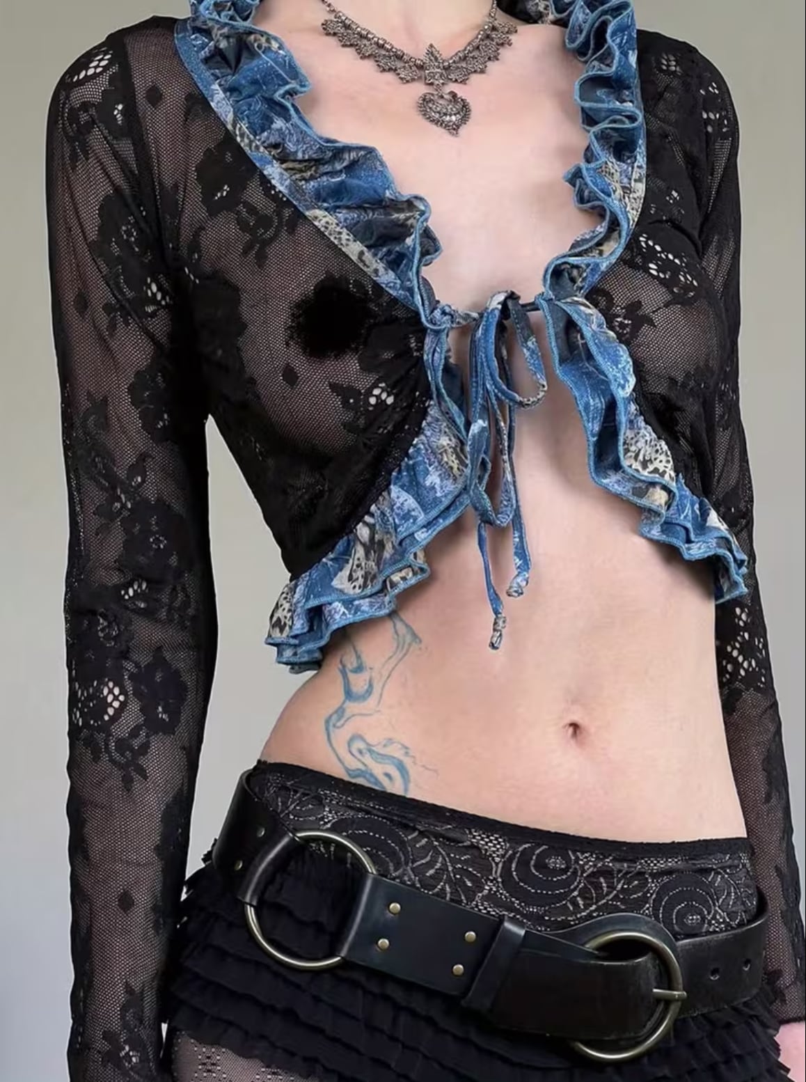 花柄の黒レースにブルーのダブルフリルがあしらわれたキュートなボレロトップス♡