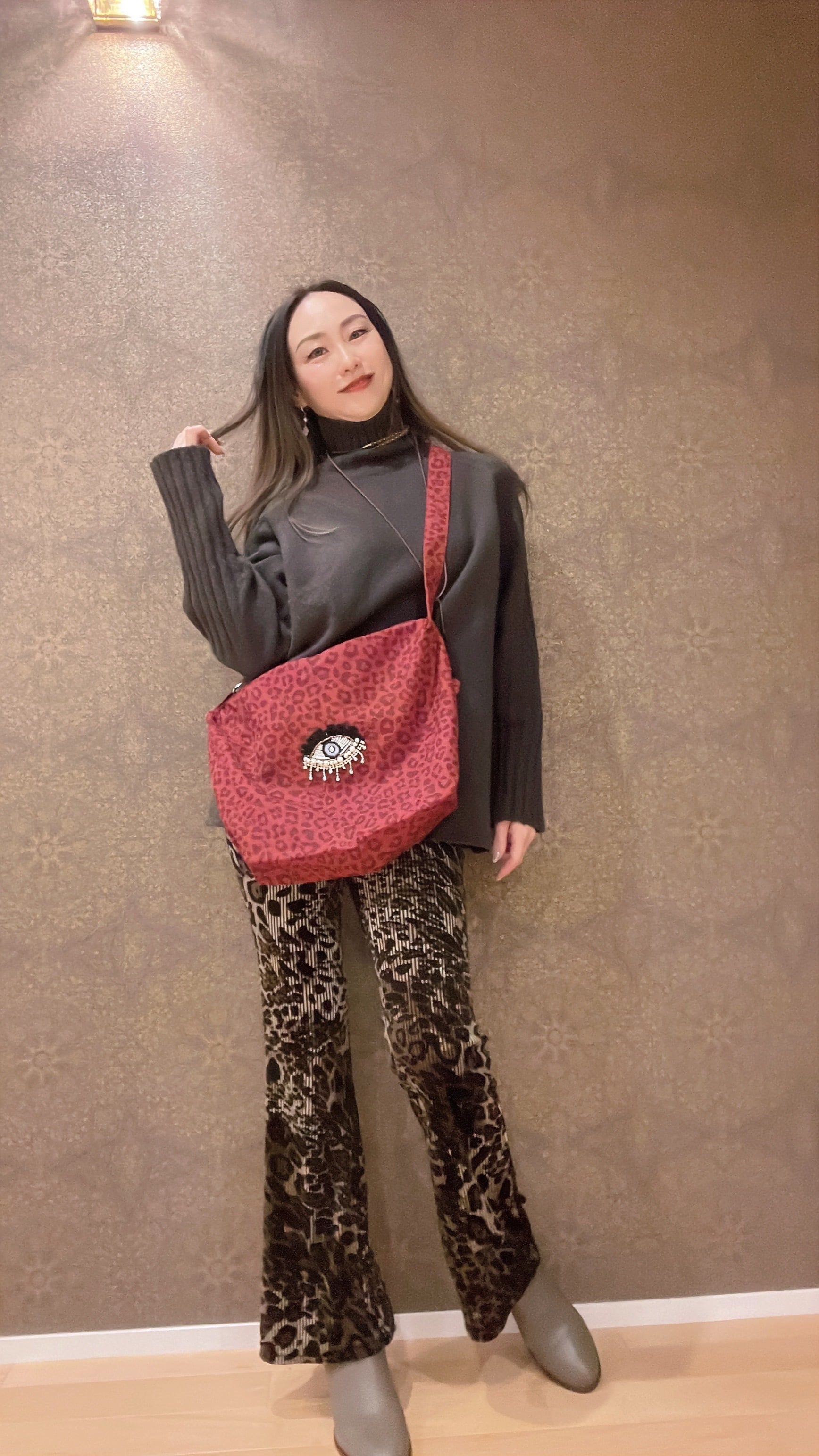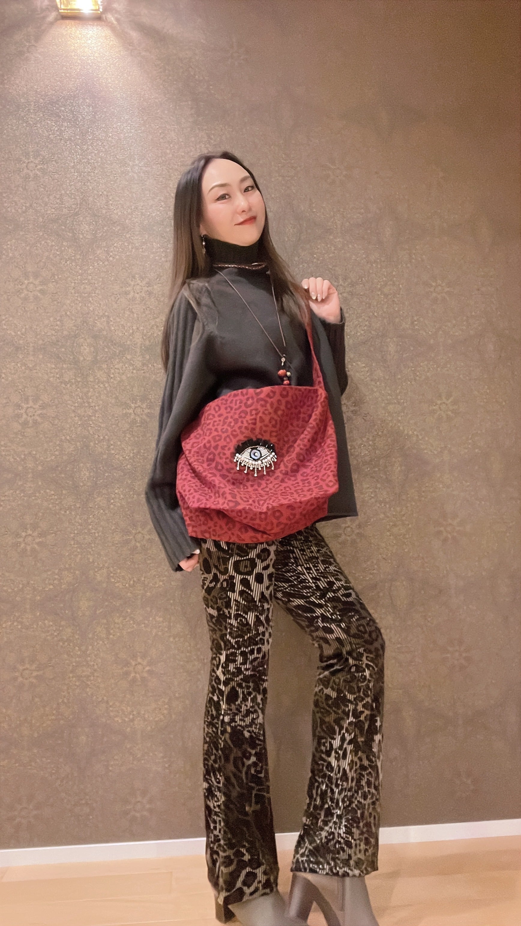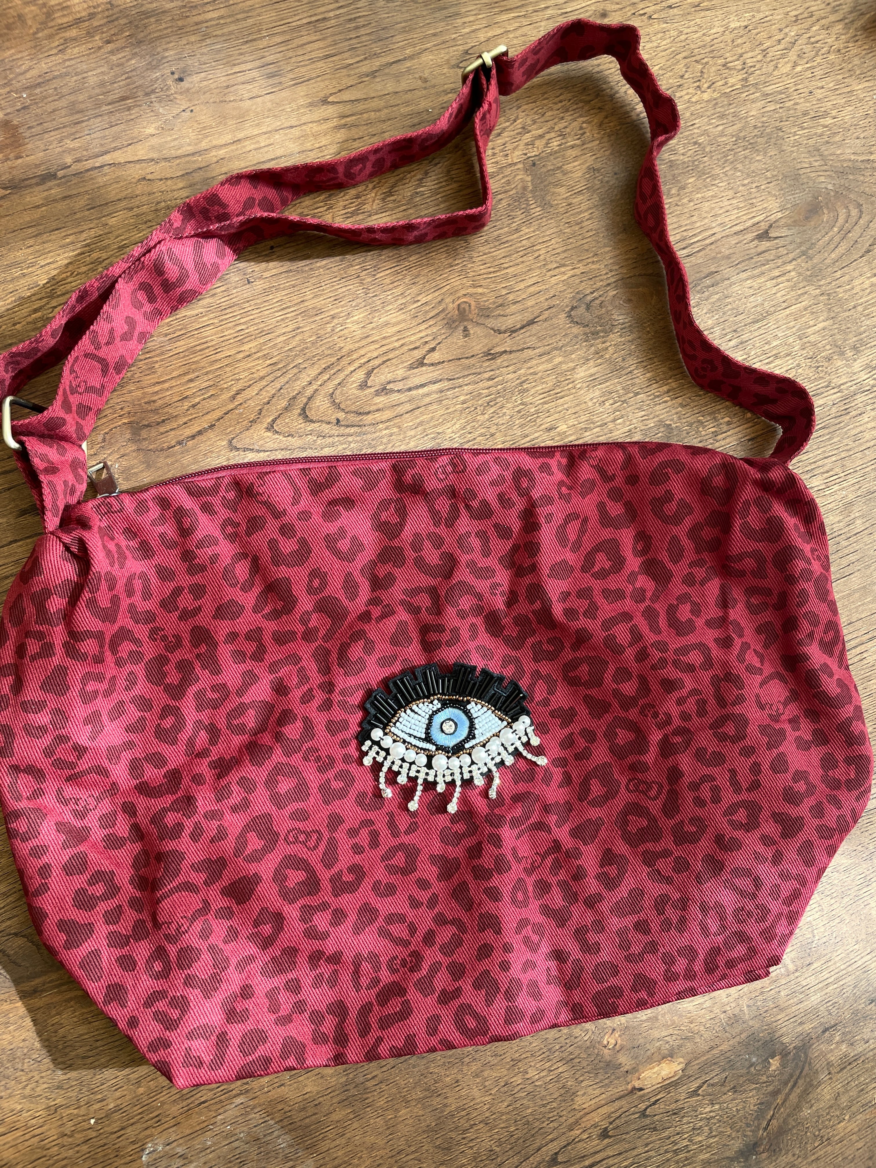 ヒョウ柄のショルダーバッグにキラキラお目目ちゃんを付けました✨