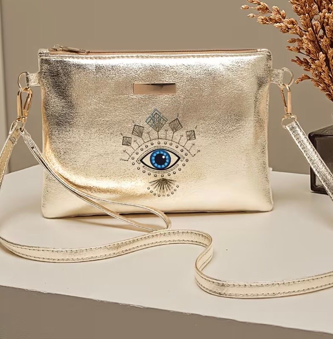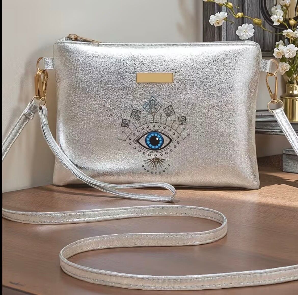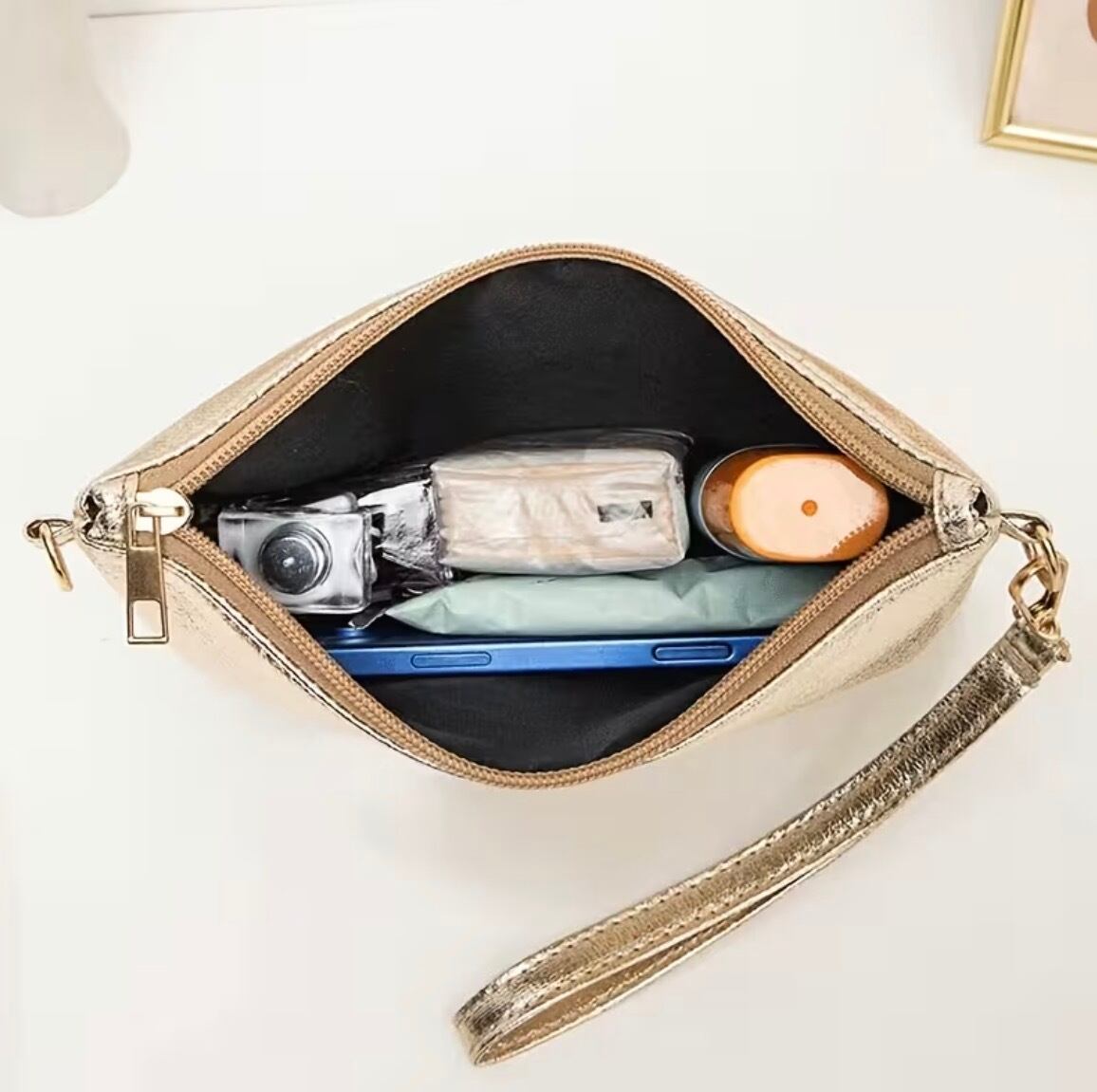 携帯、お財布などの貴重品を入れて動きやすいメタリックカラーのショルダーバッグ