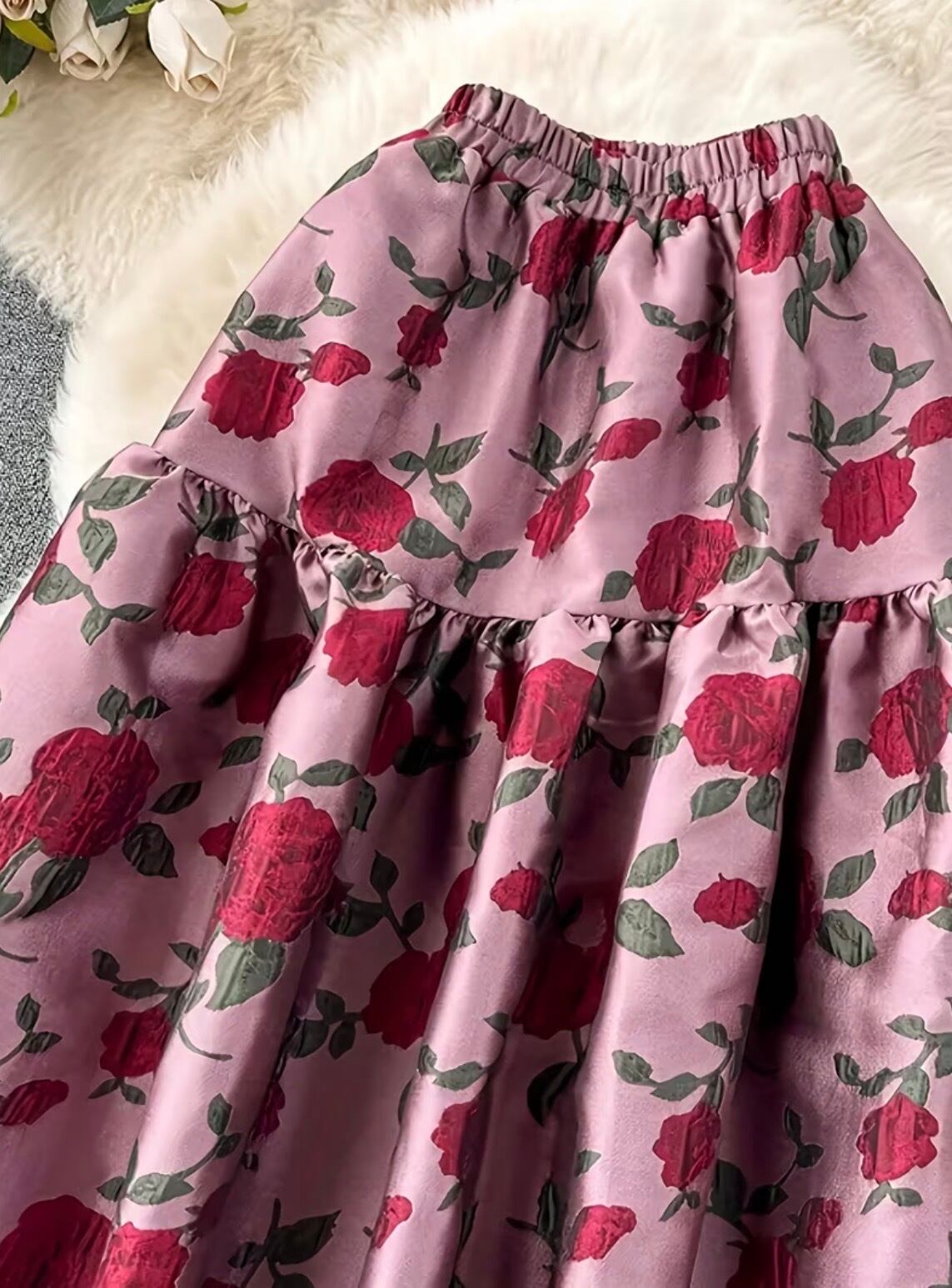 ローズ花柄フレアスカート