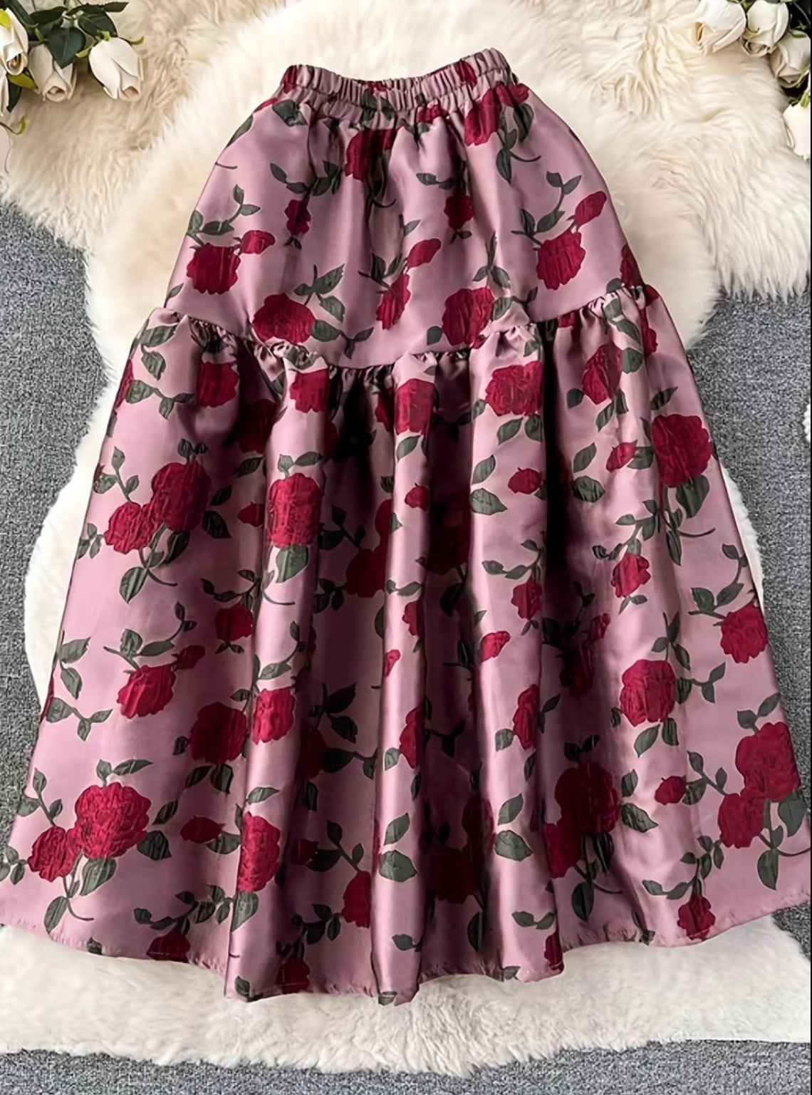 ロマンティックなローズの花柄フレアスカート♡
