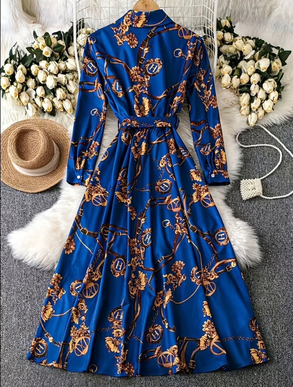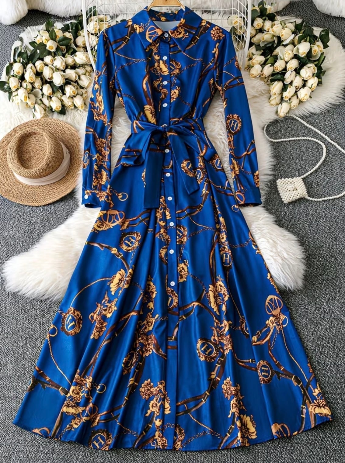 スカーフ柄シャツワンピース