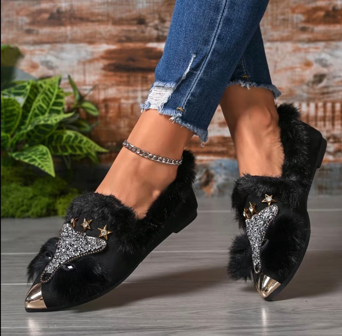 キツネのふわふわスパークリングスリッポン 2色