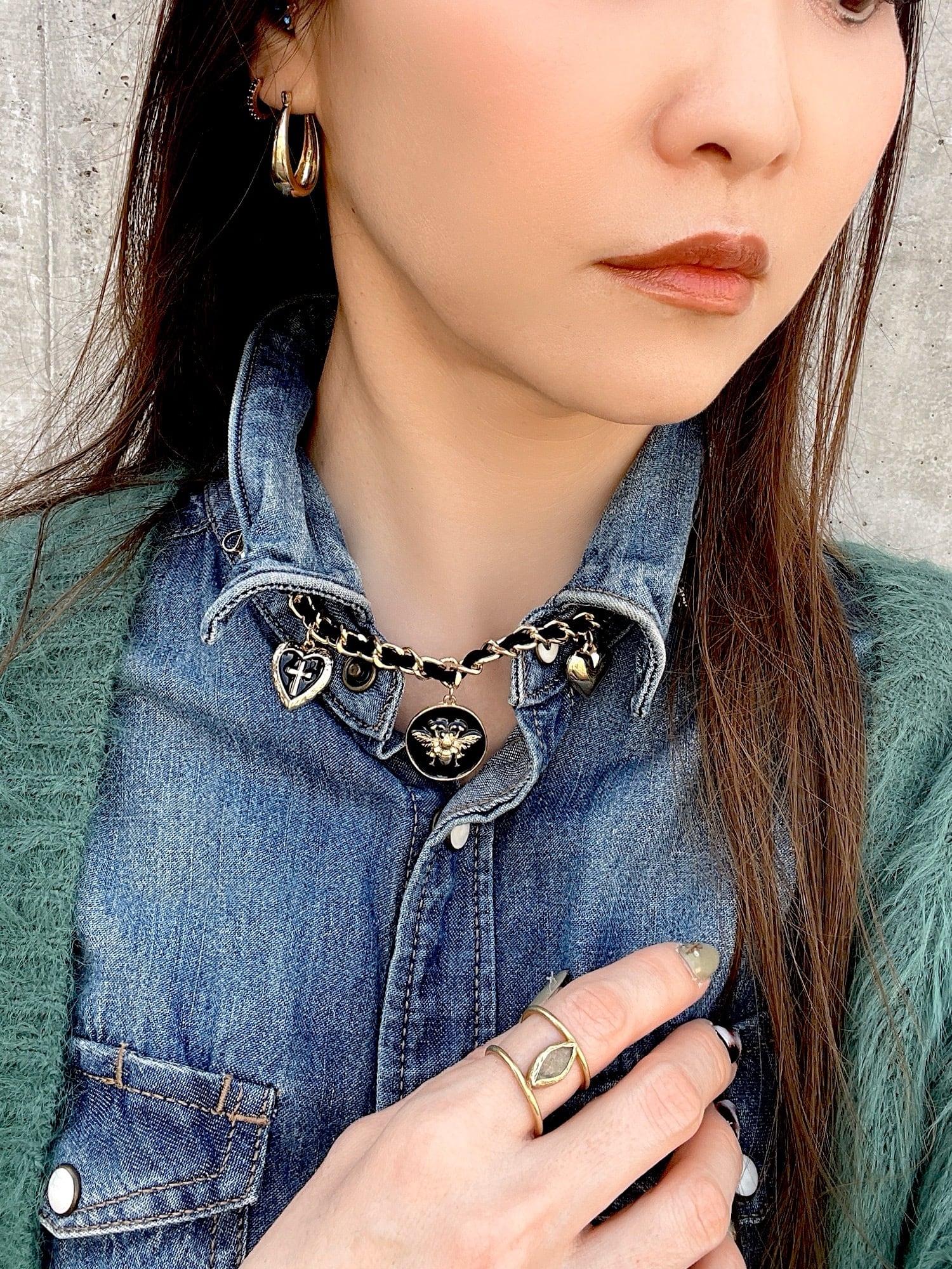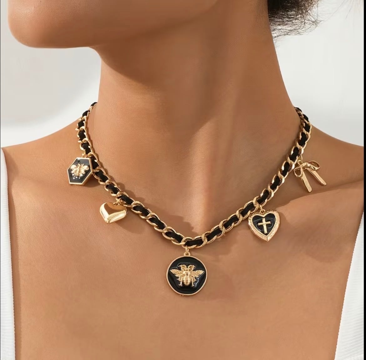 バグチャームのチェーンネックレス