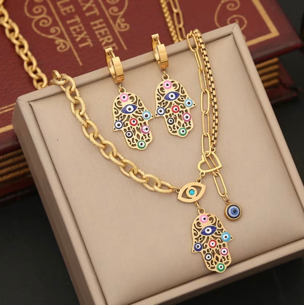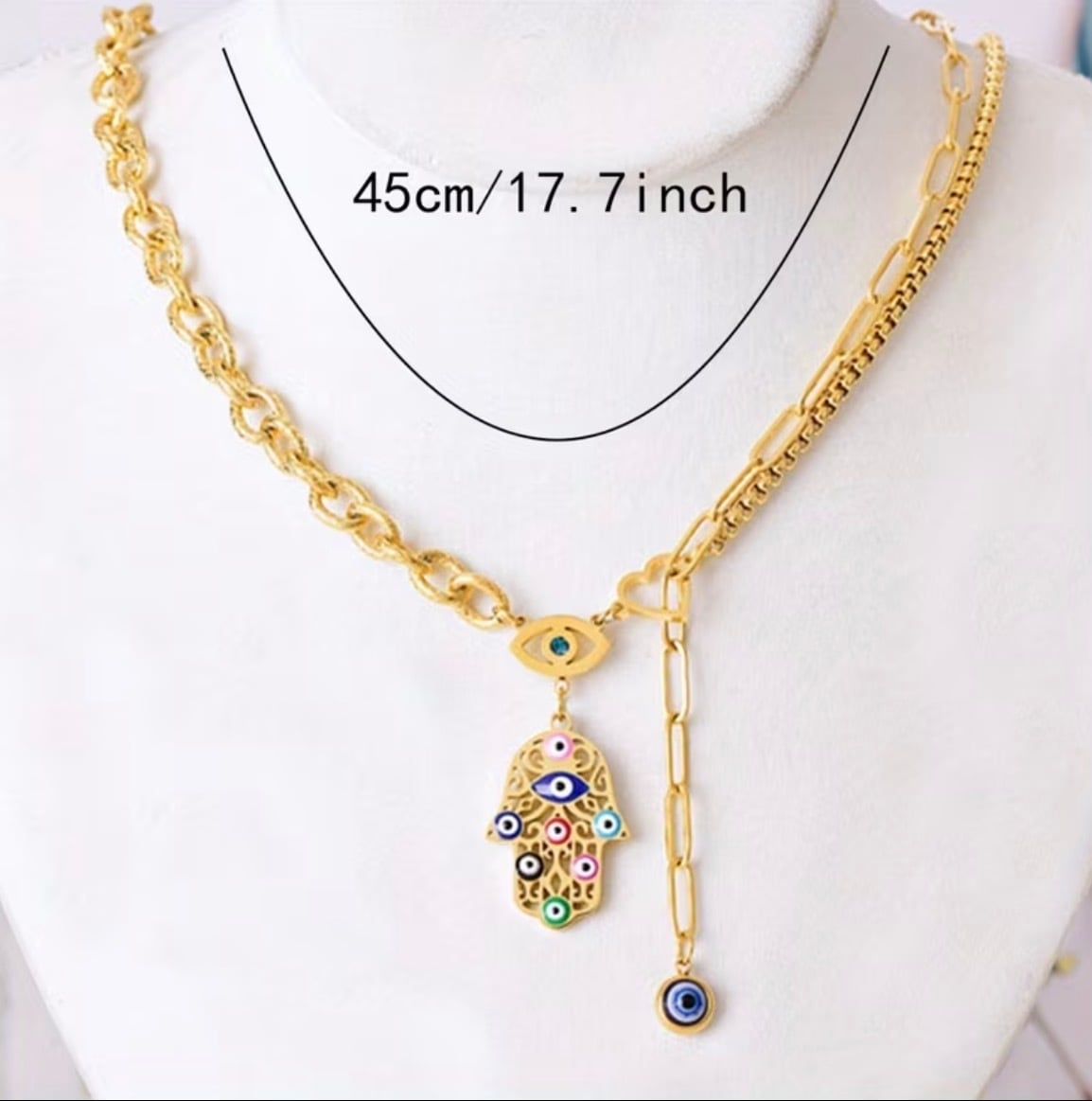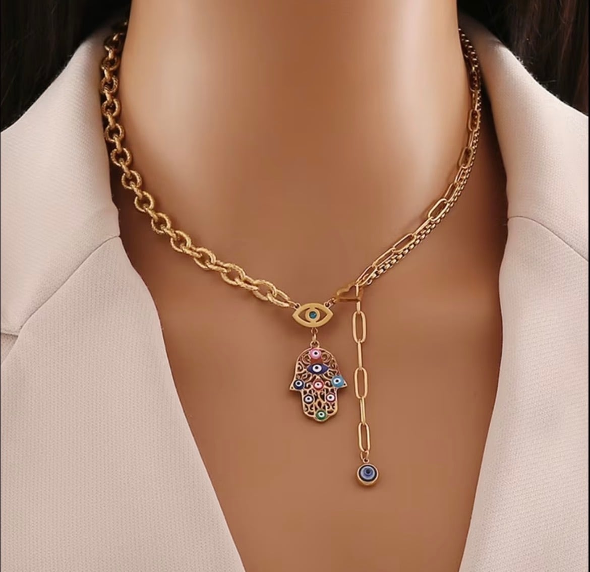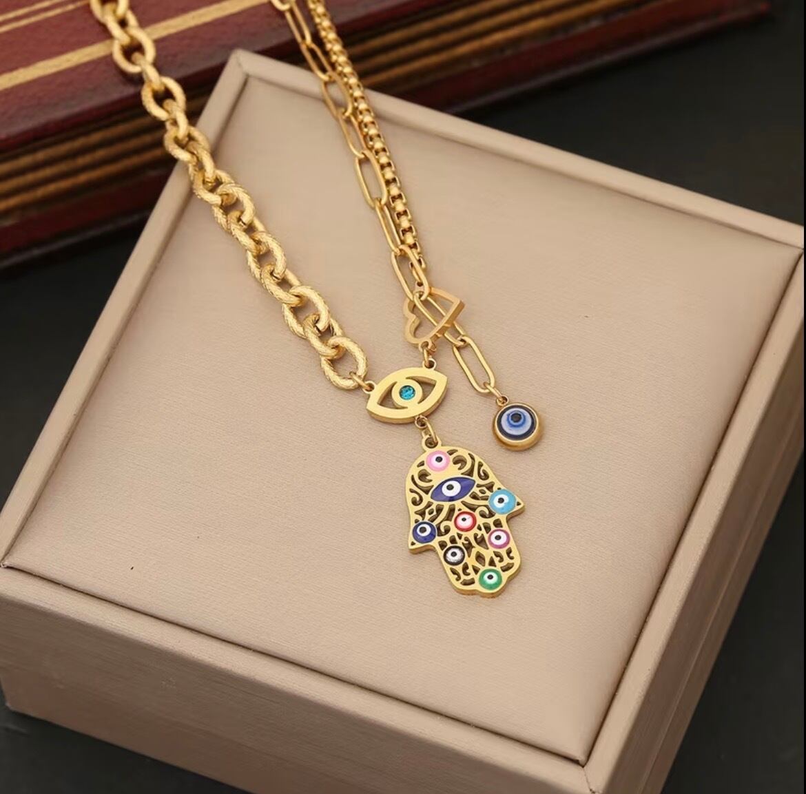 チタン製ハムサ&ナザールネックレス