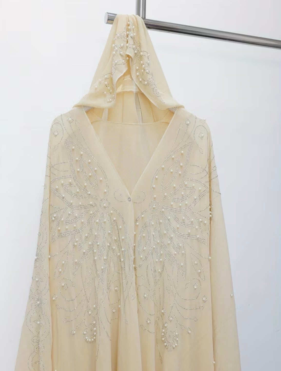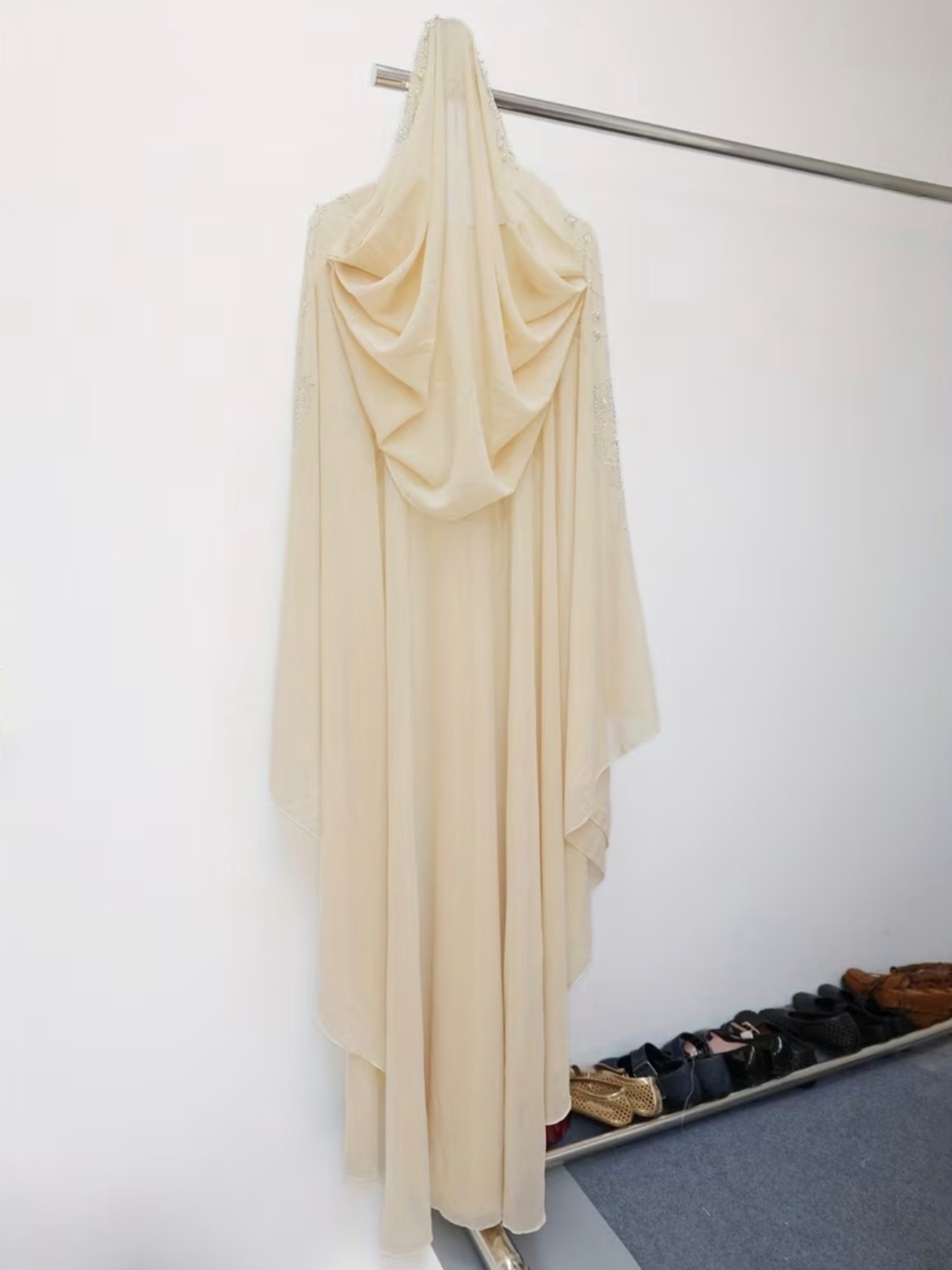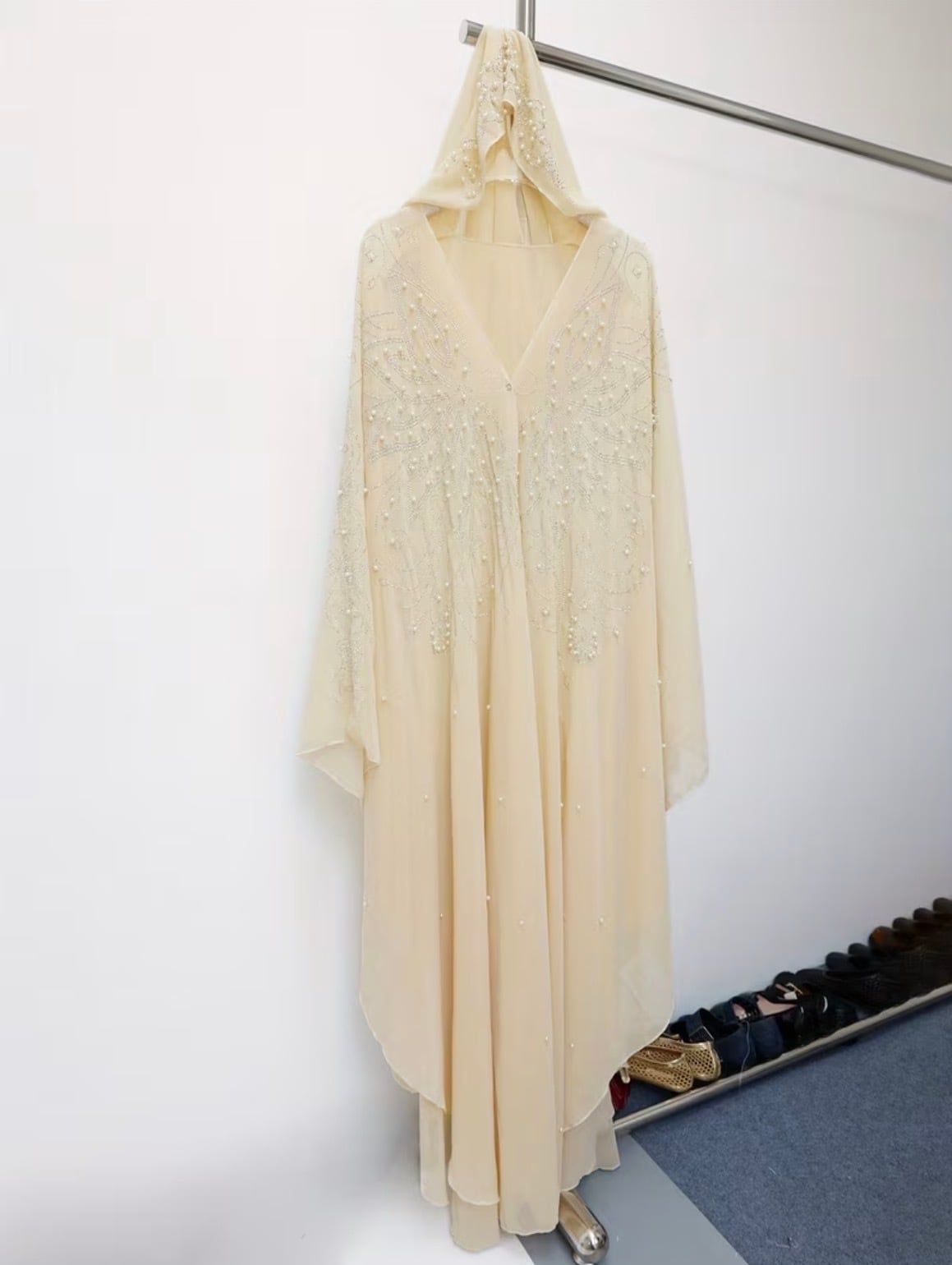パール飾りが上品なアプリコット色のガラベーヤ✨