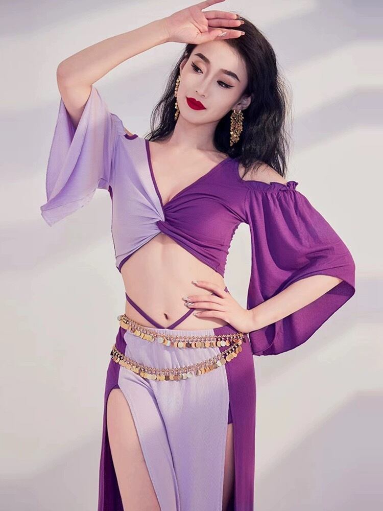 【即納】ベリーダンス レッスンウェア バイカラー 紫系