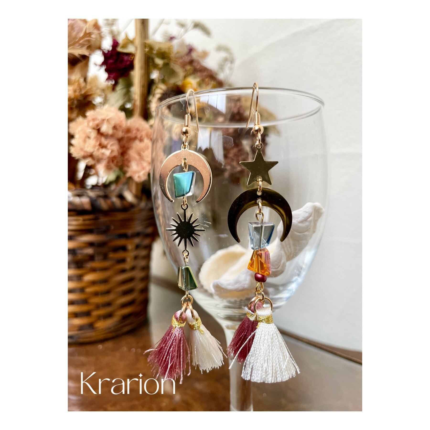 星、月モチーフに綺麗なガラスビーズと