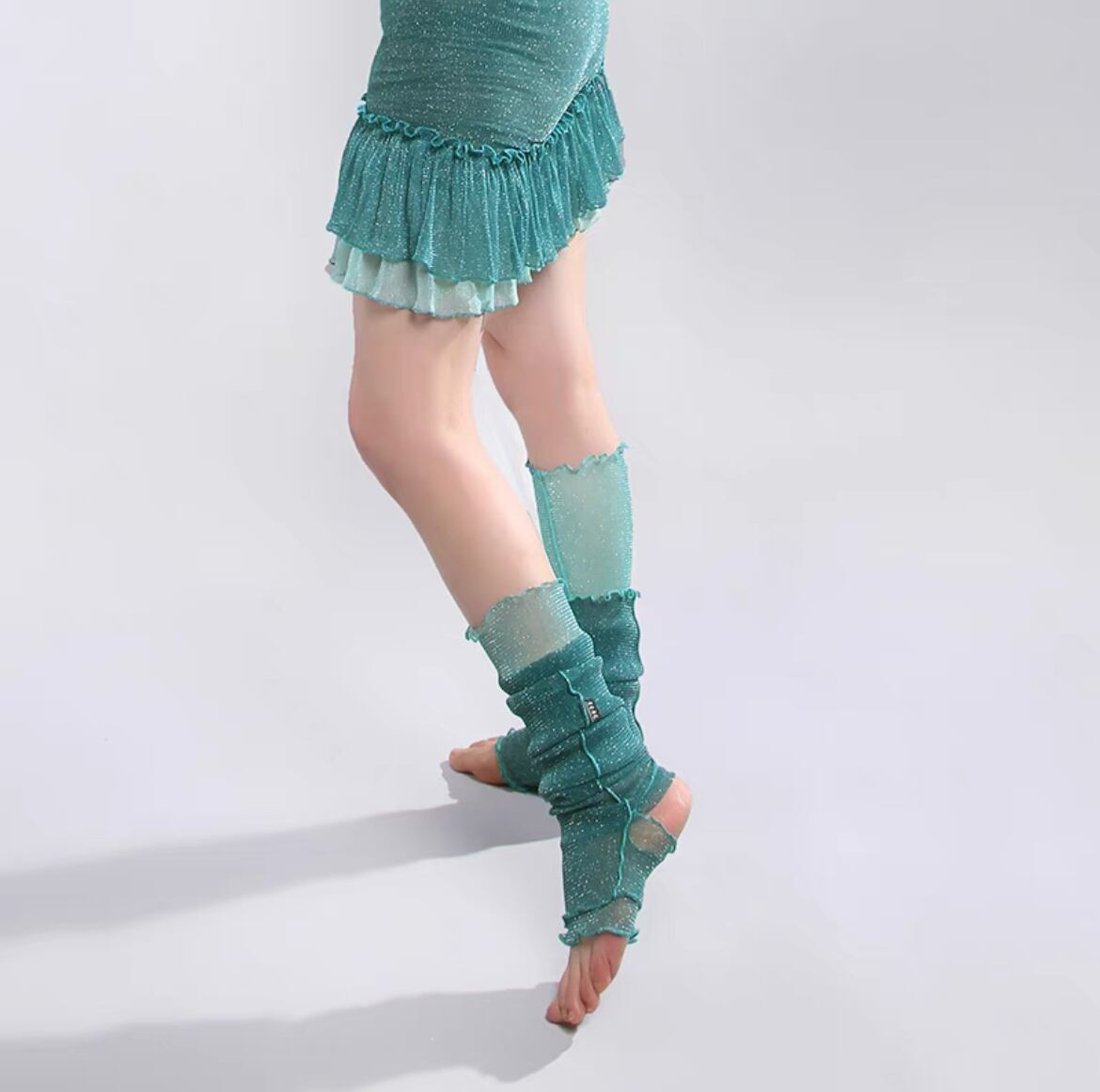 レッスンウェア上下セットとおそろい素材の軽やかレッグウォーマー。