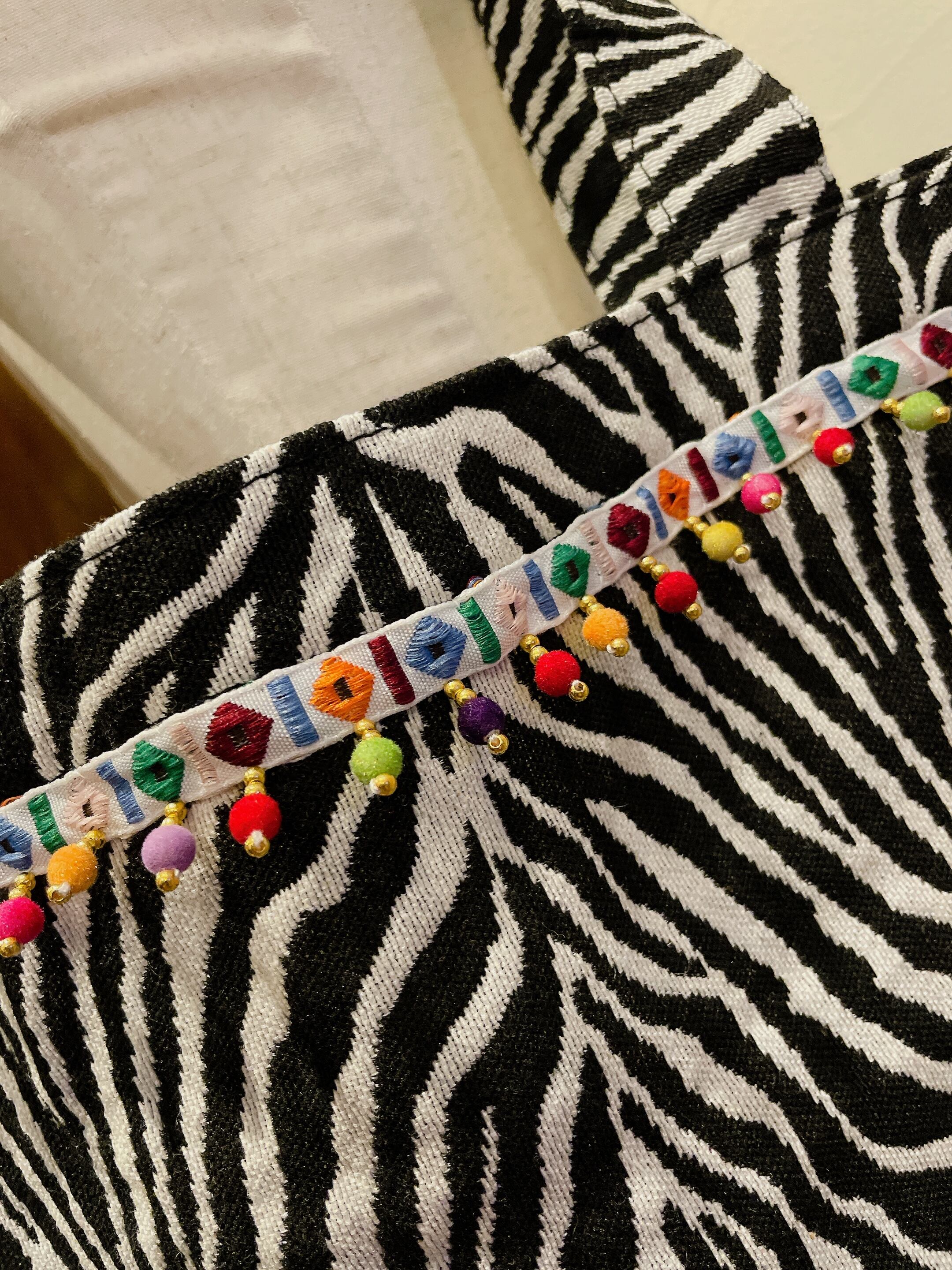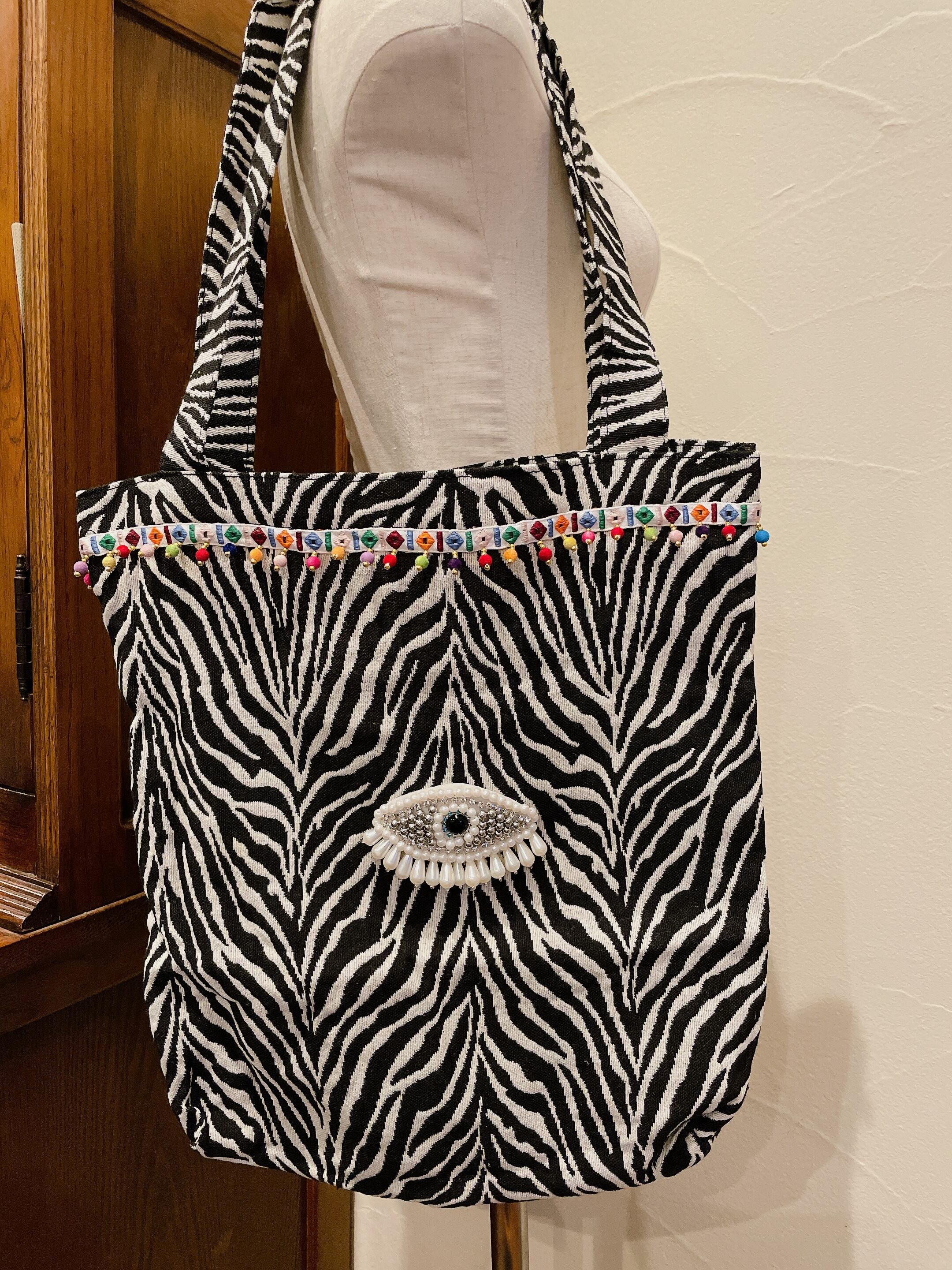 【オーダー】シマウマ柄パールのお目目ボンボントートバッグ♡