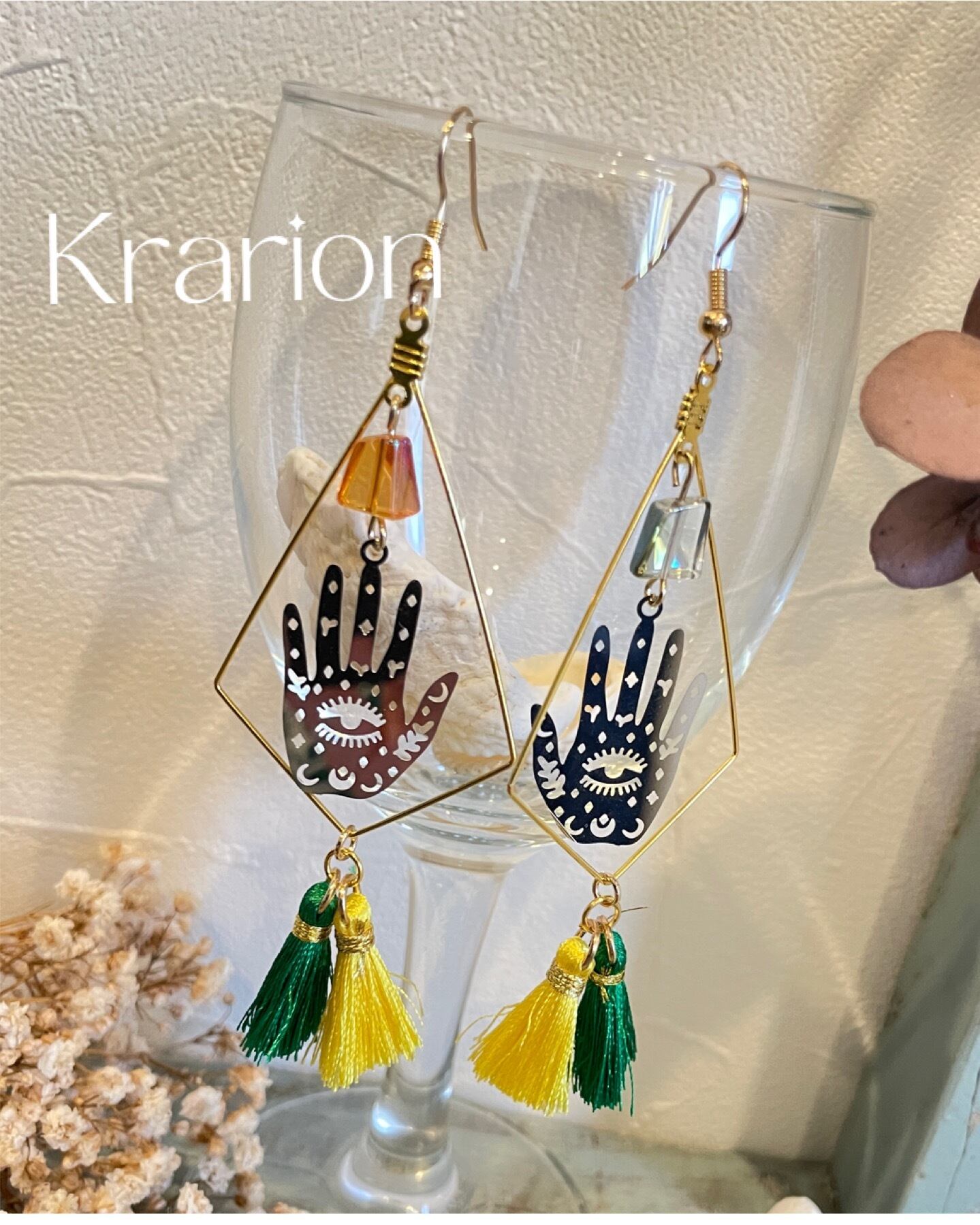 #krarion #クラリオン #ハンドメイドアクセサリー #ハンドメイドピアス #ハムサ #邪眼 #フリンジ