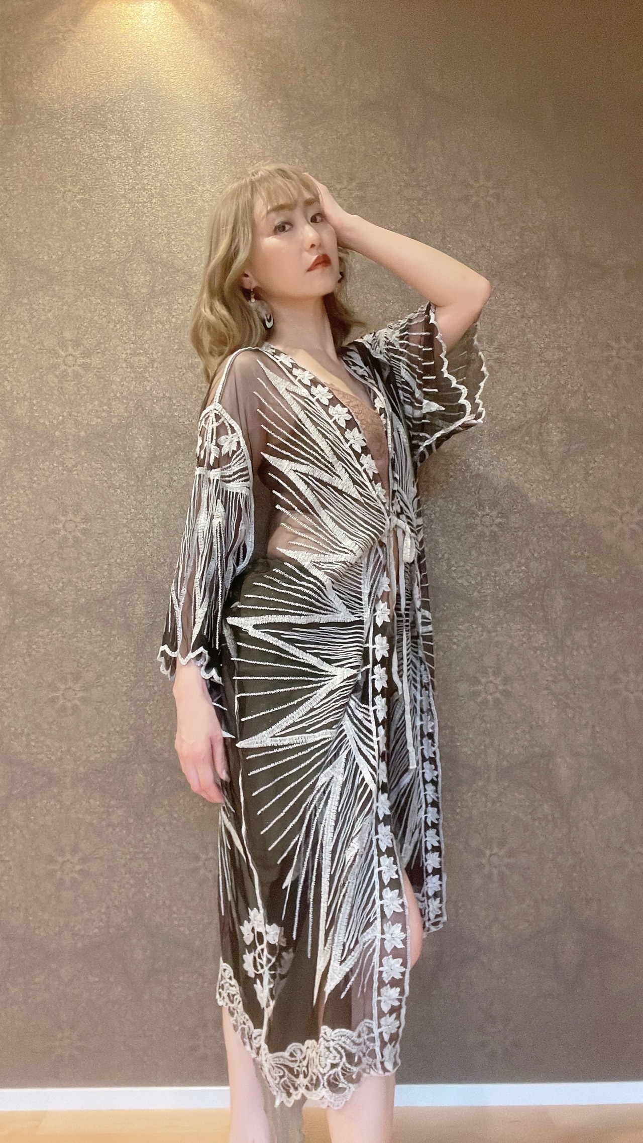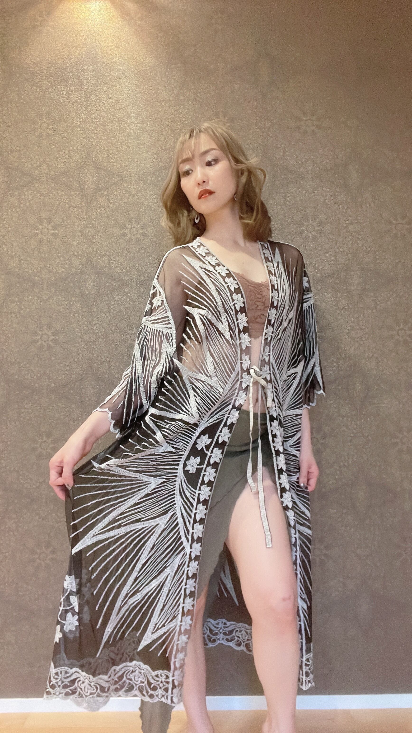 レースで女神なガラベーヤ ブラック