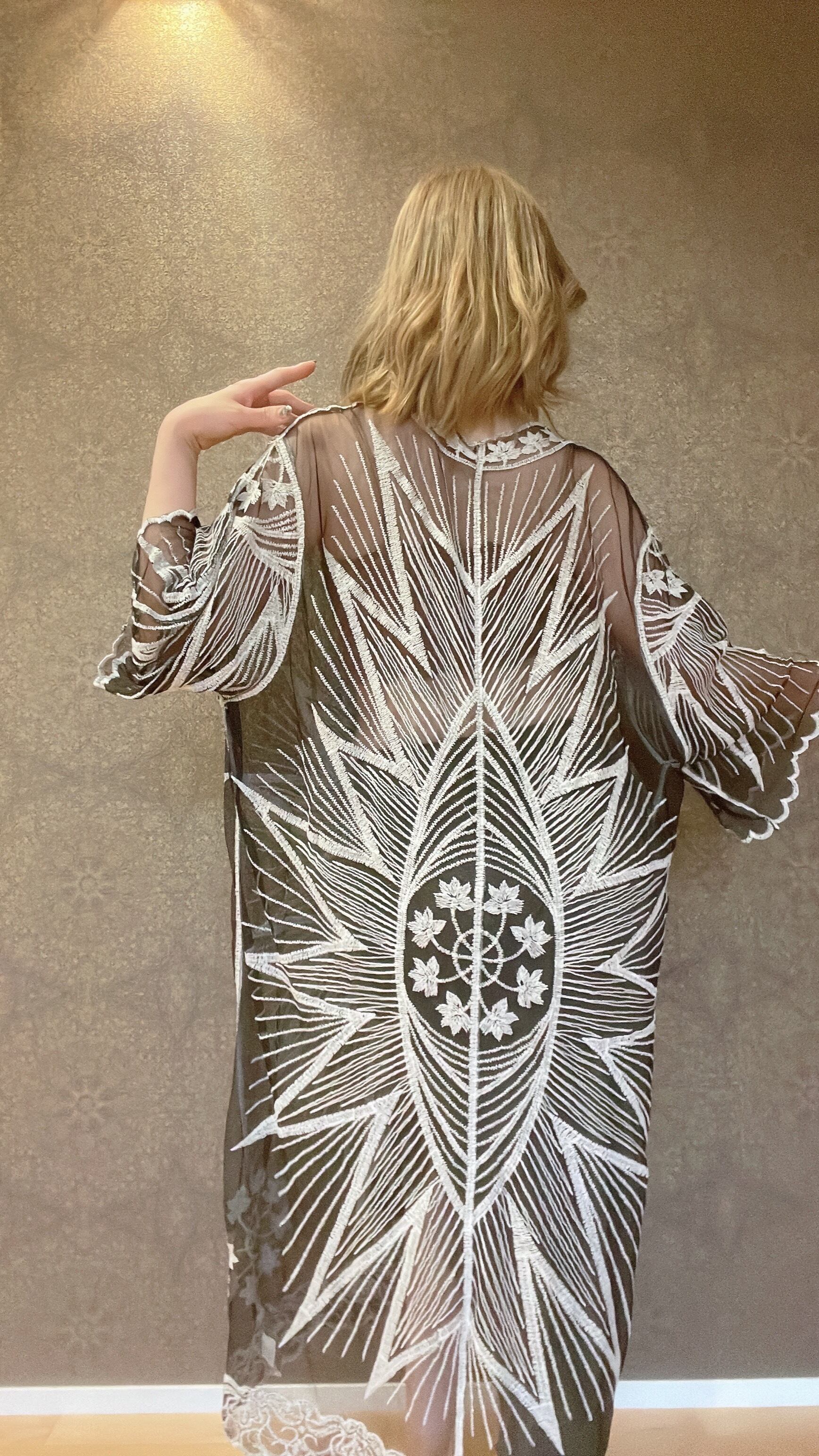 黒レースに白の模様織りが美しいガラベーヤ。