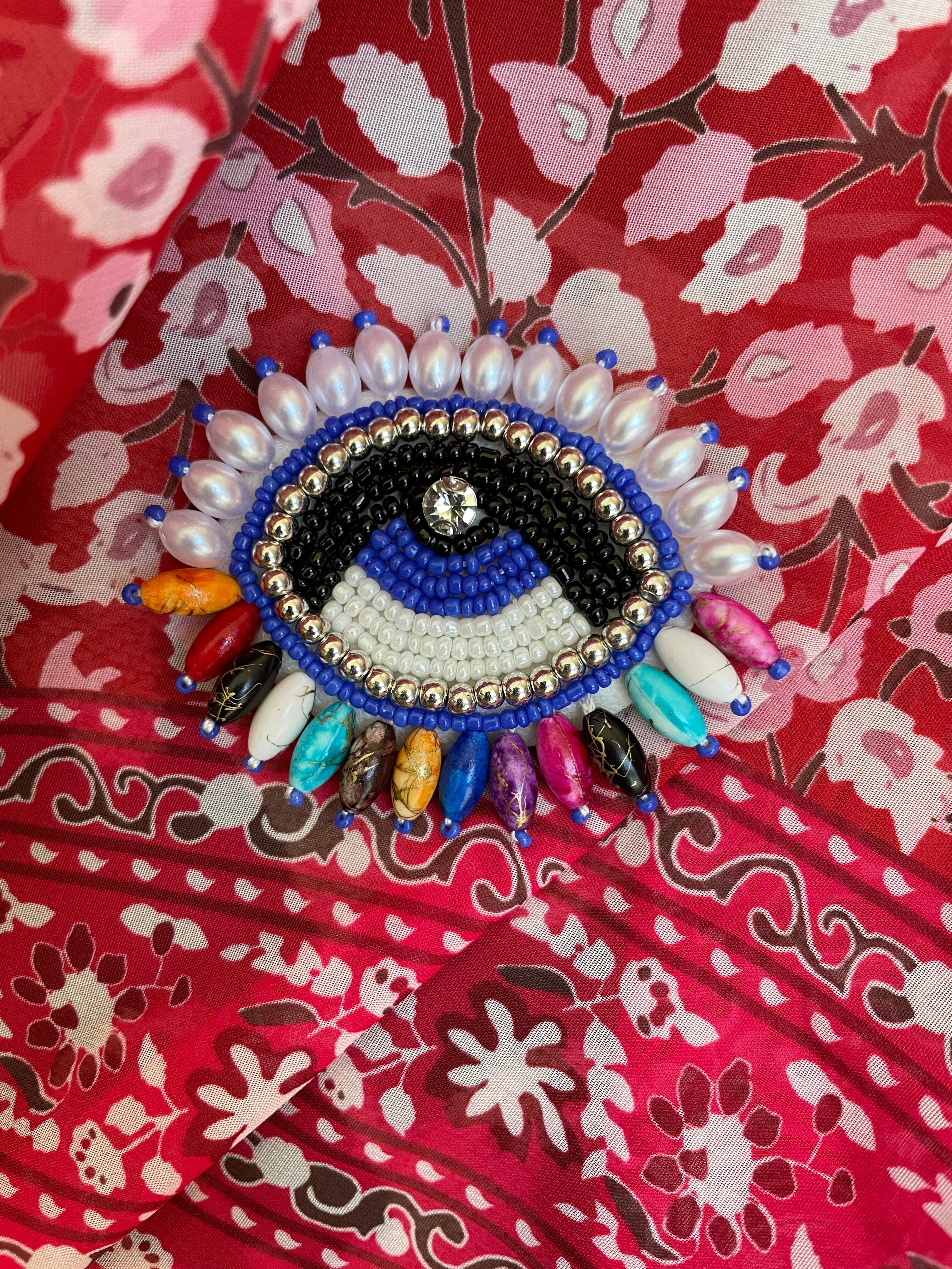 お目目モチーフのブローチをおつけしておりますので、お好みで前を留めたり、胸元に着けたり アレンジしてみてください◡̈ ✧*。