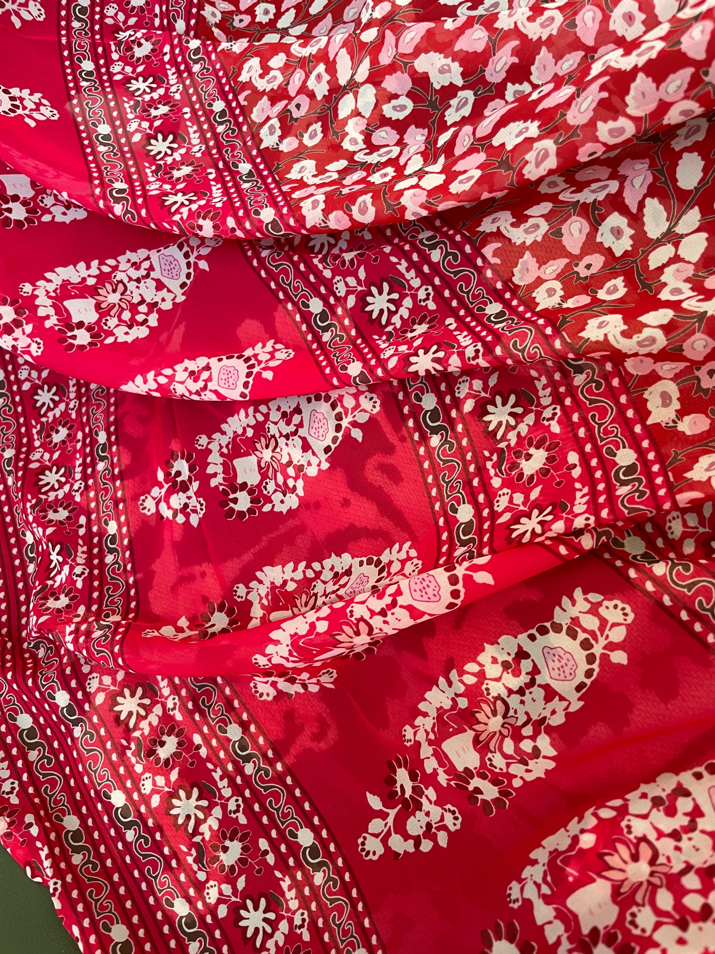 ガーリーピンクの花柄ガラベーヤ