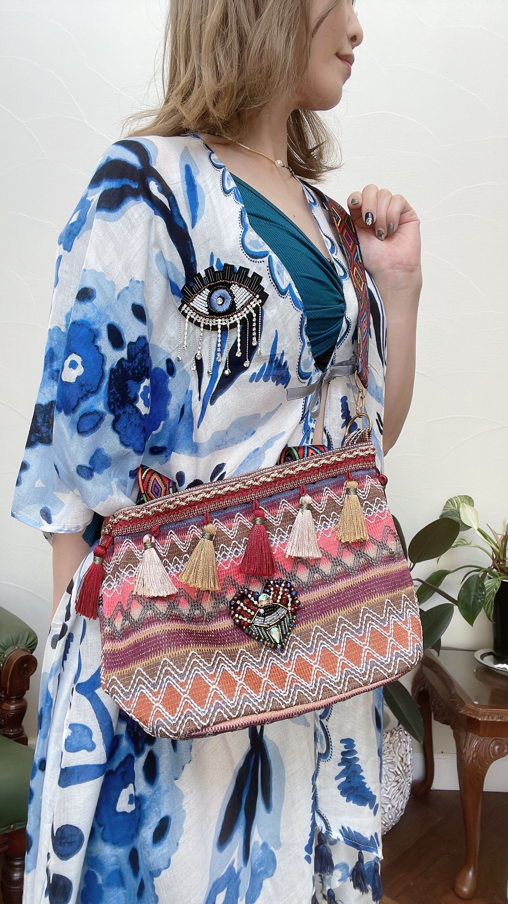 【受注制作】お目目ビジュー✖︎タッセルトートバッグ&ショルダーバッグ