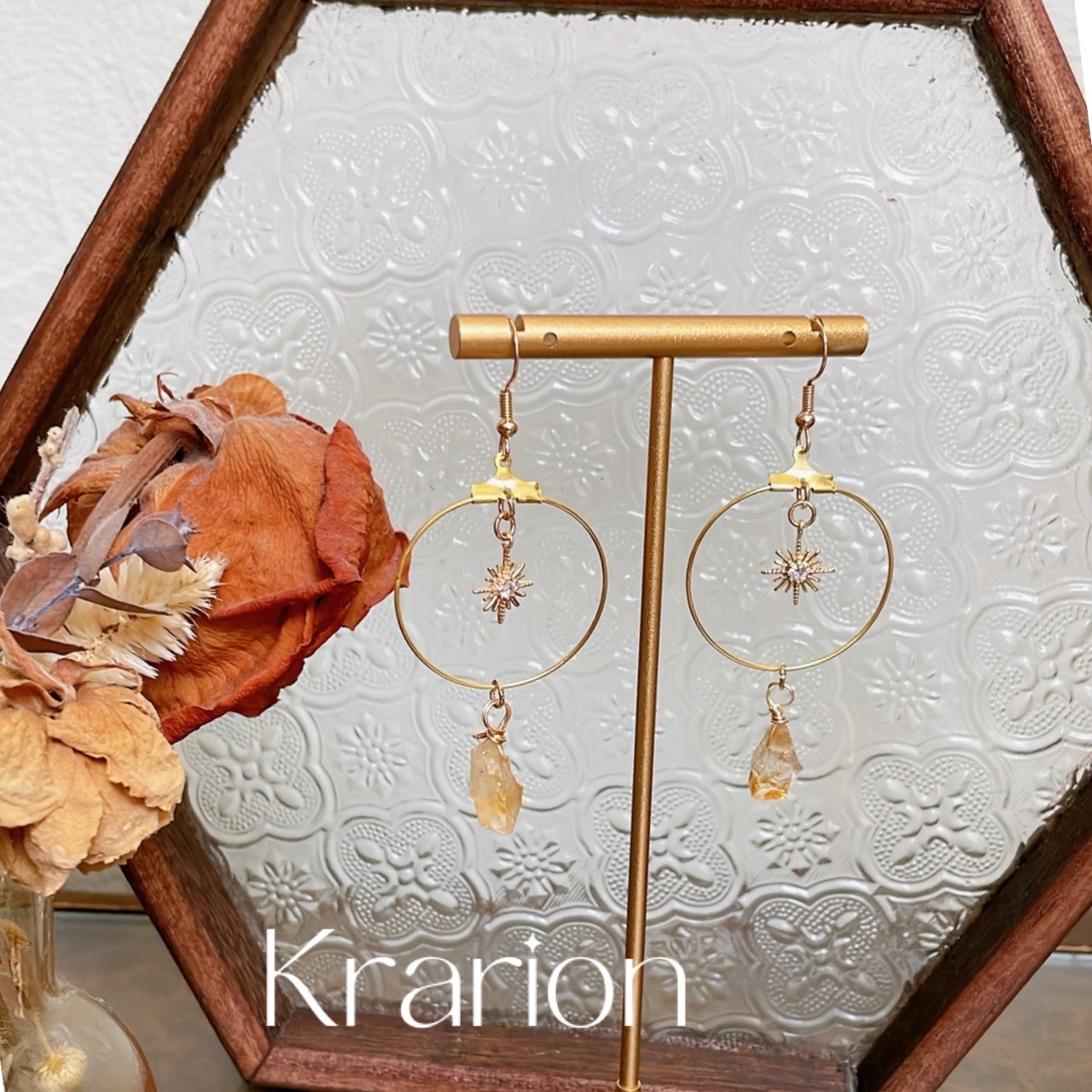 【予約注文】天然石シトリンとスターシャインピアス