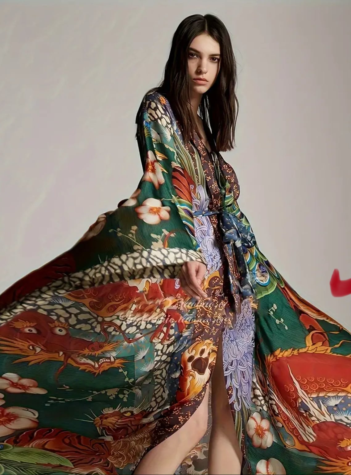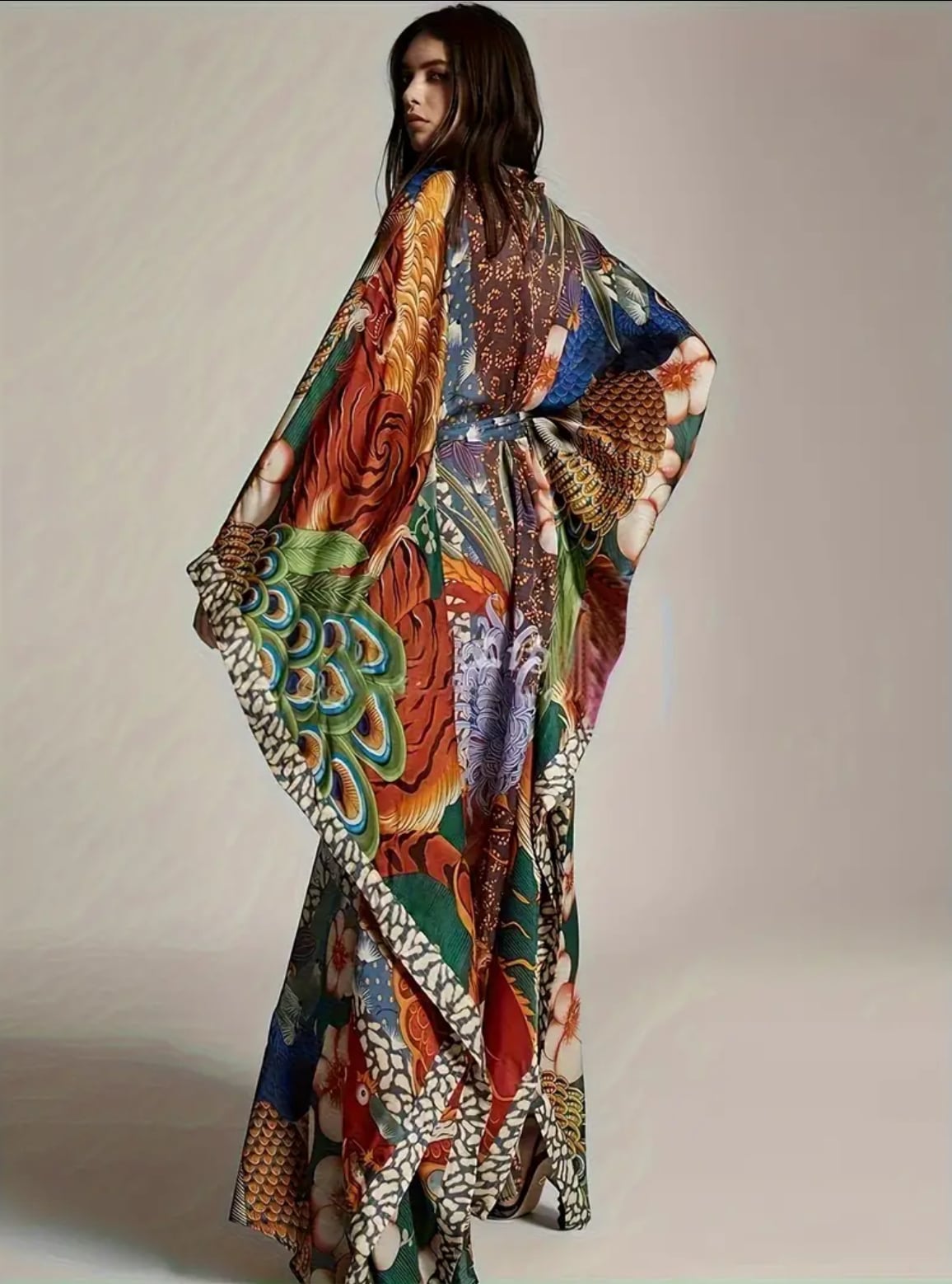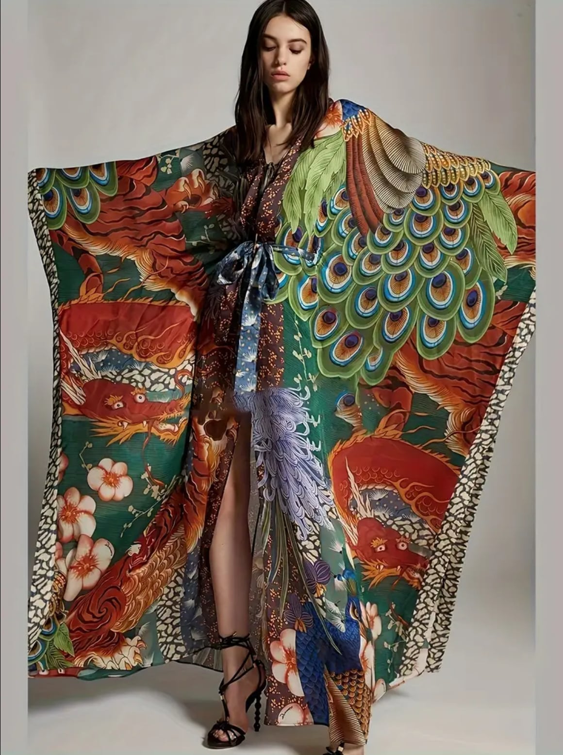 龍と孔雀のプリントが高貴で美しいガラベーヤ✨