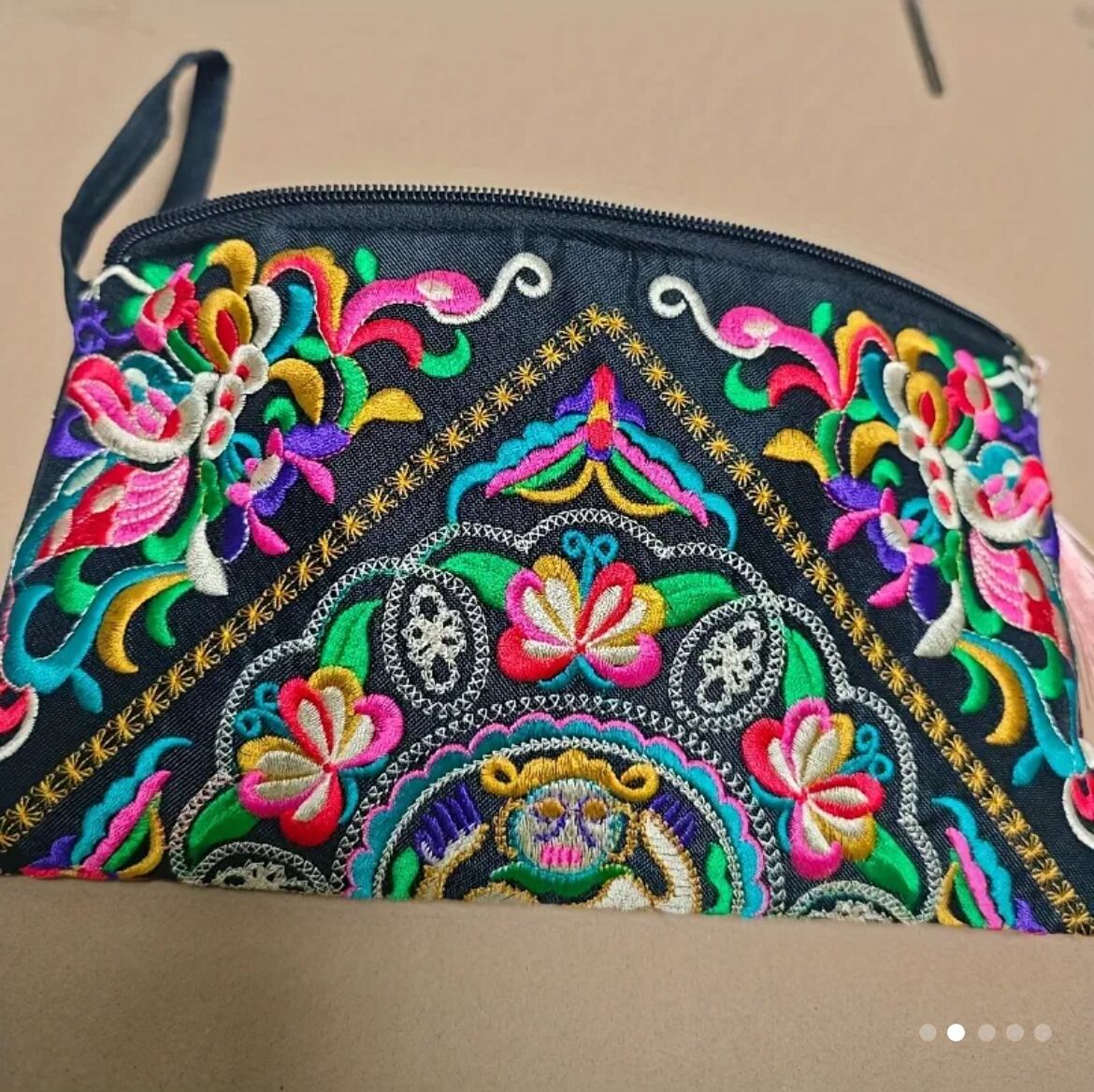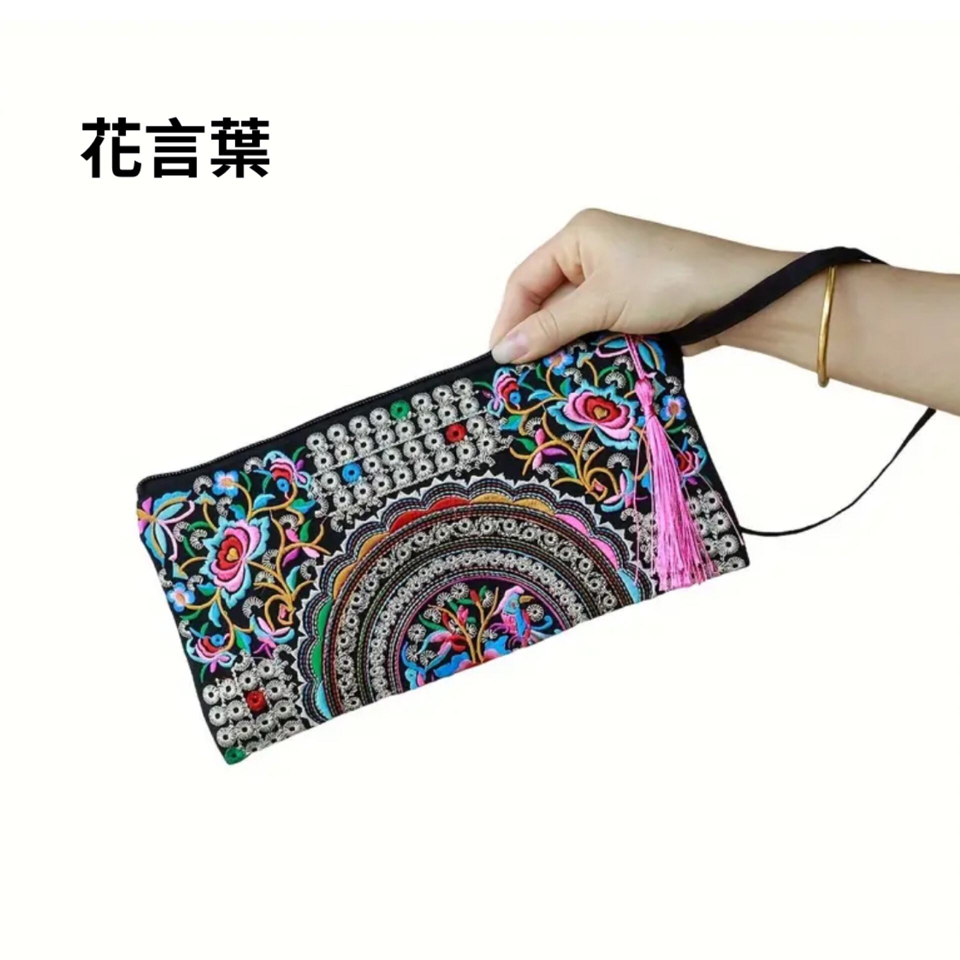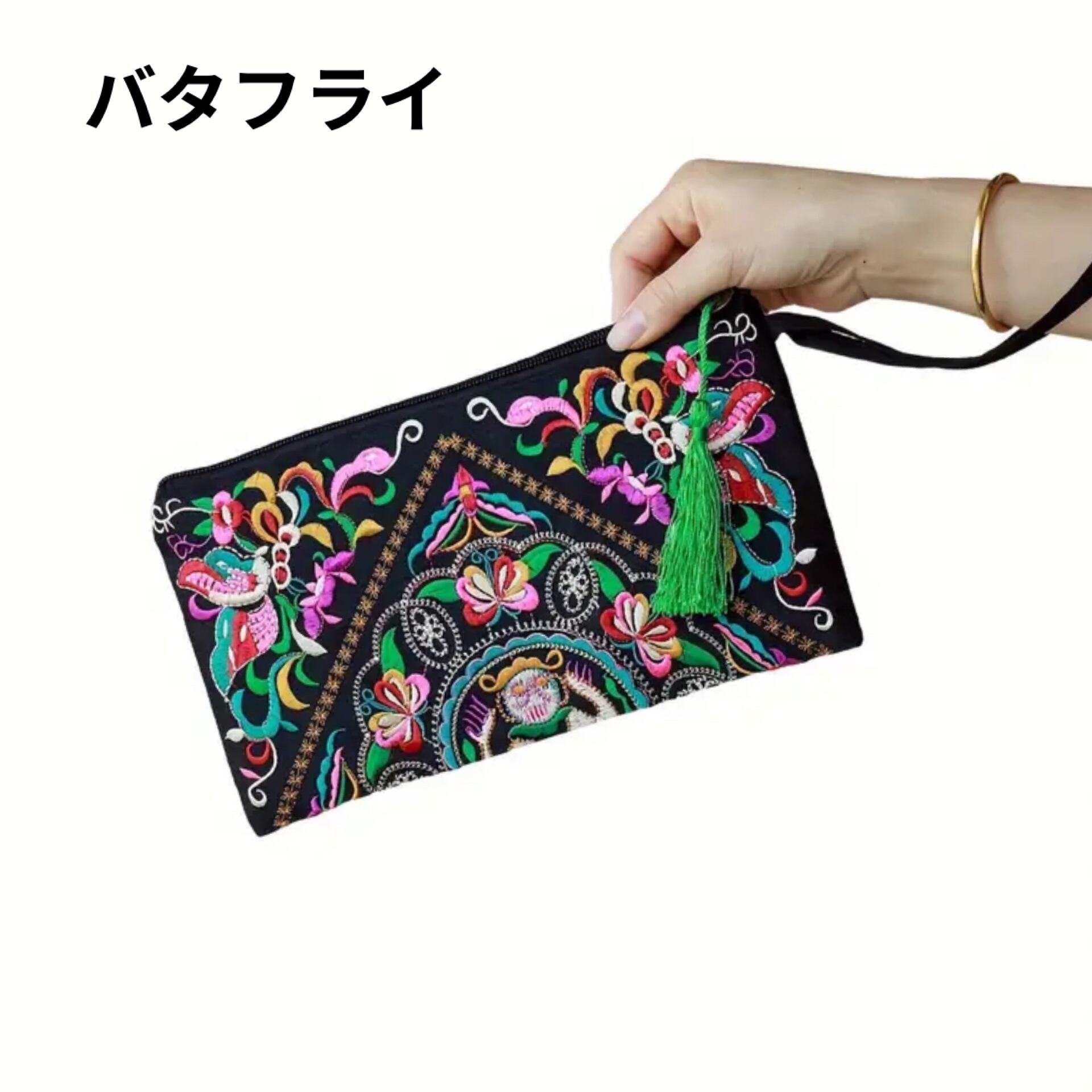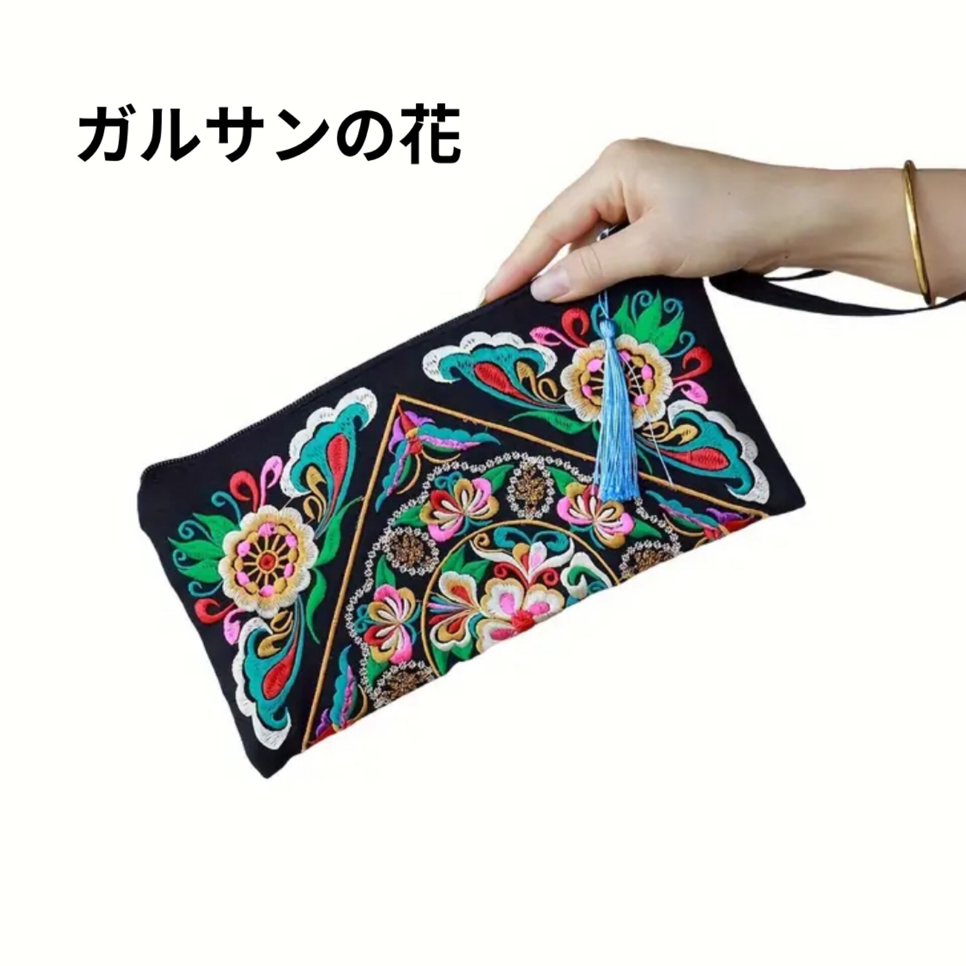 オリエンタルなデザインの刺繍が美しいクラッチ。