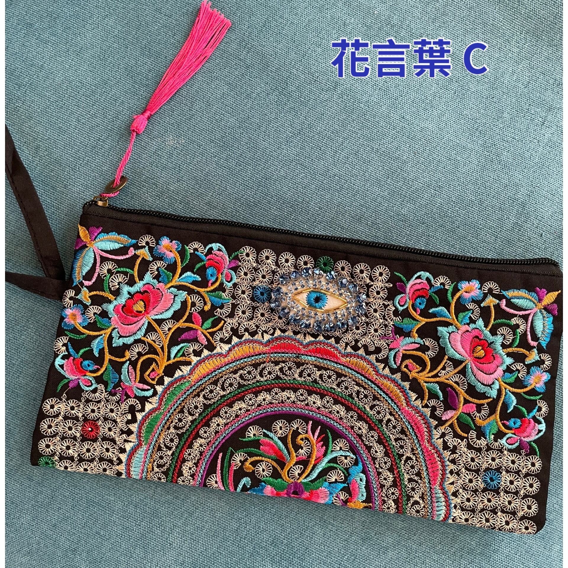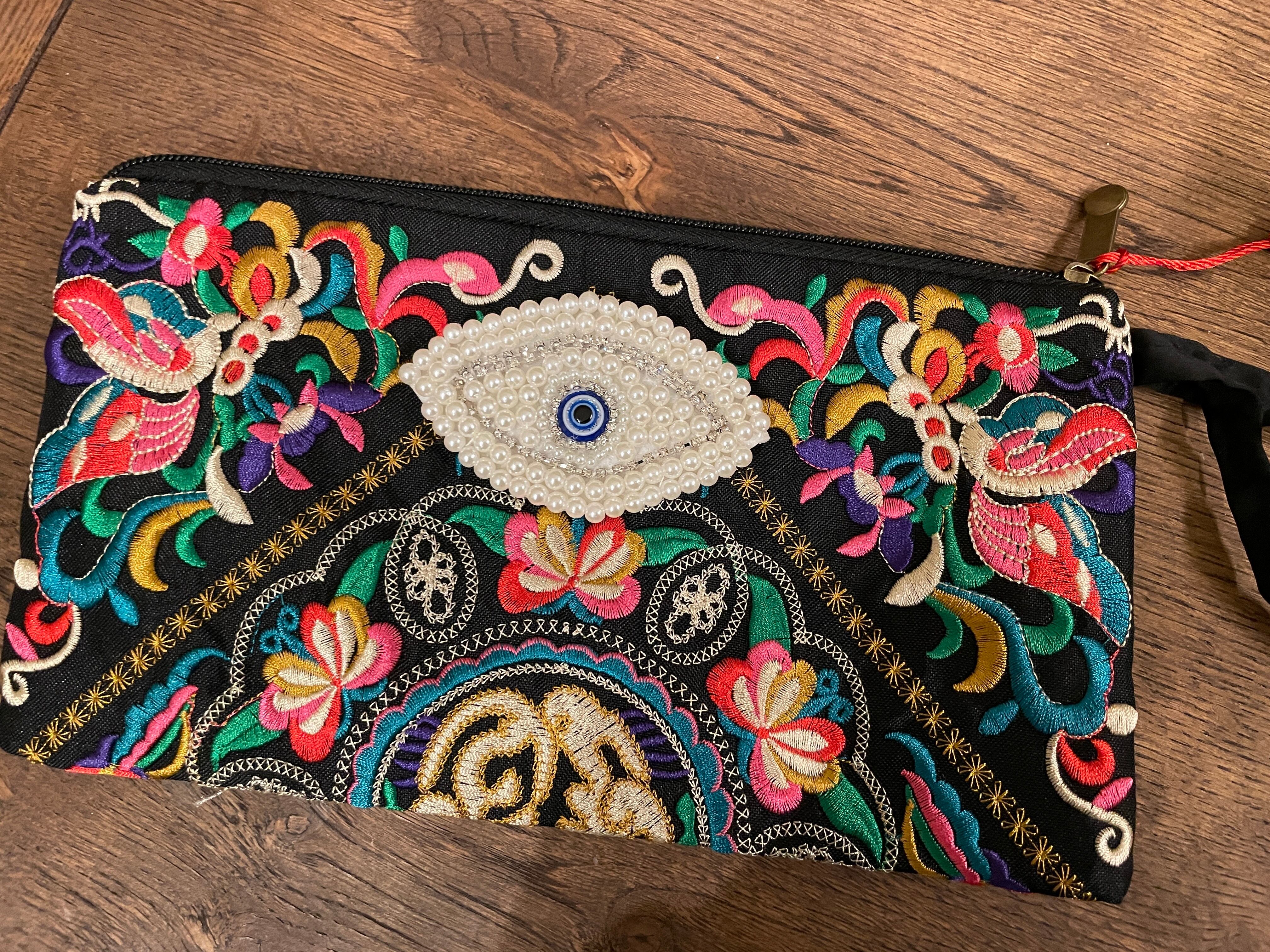 お目目ちゃんのオリエンタル刺繍クラッチ