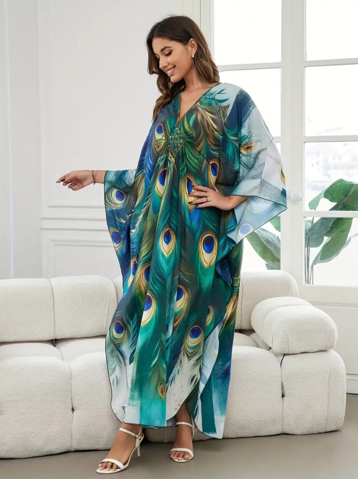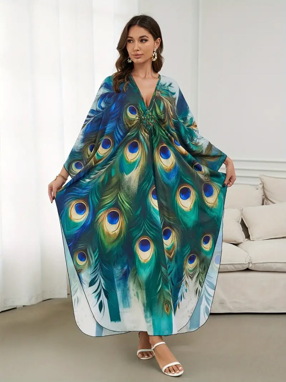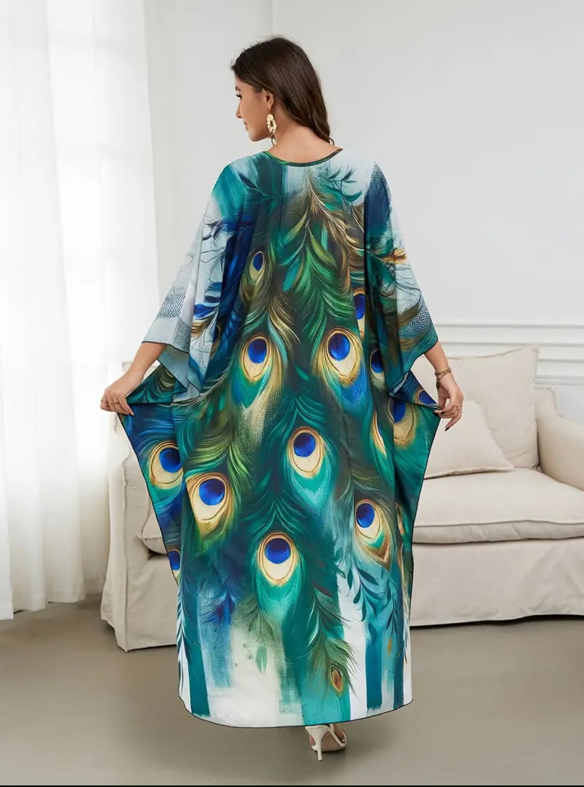 孔雀の羽根プリントガラベーヤ