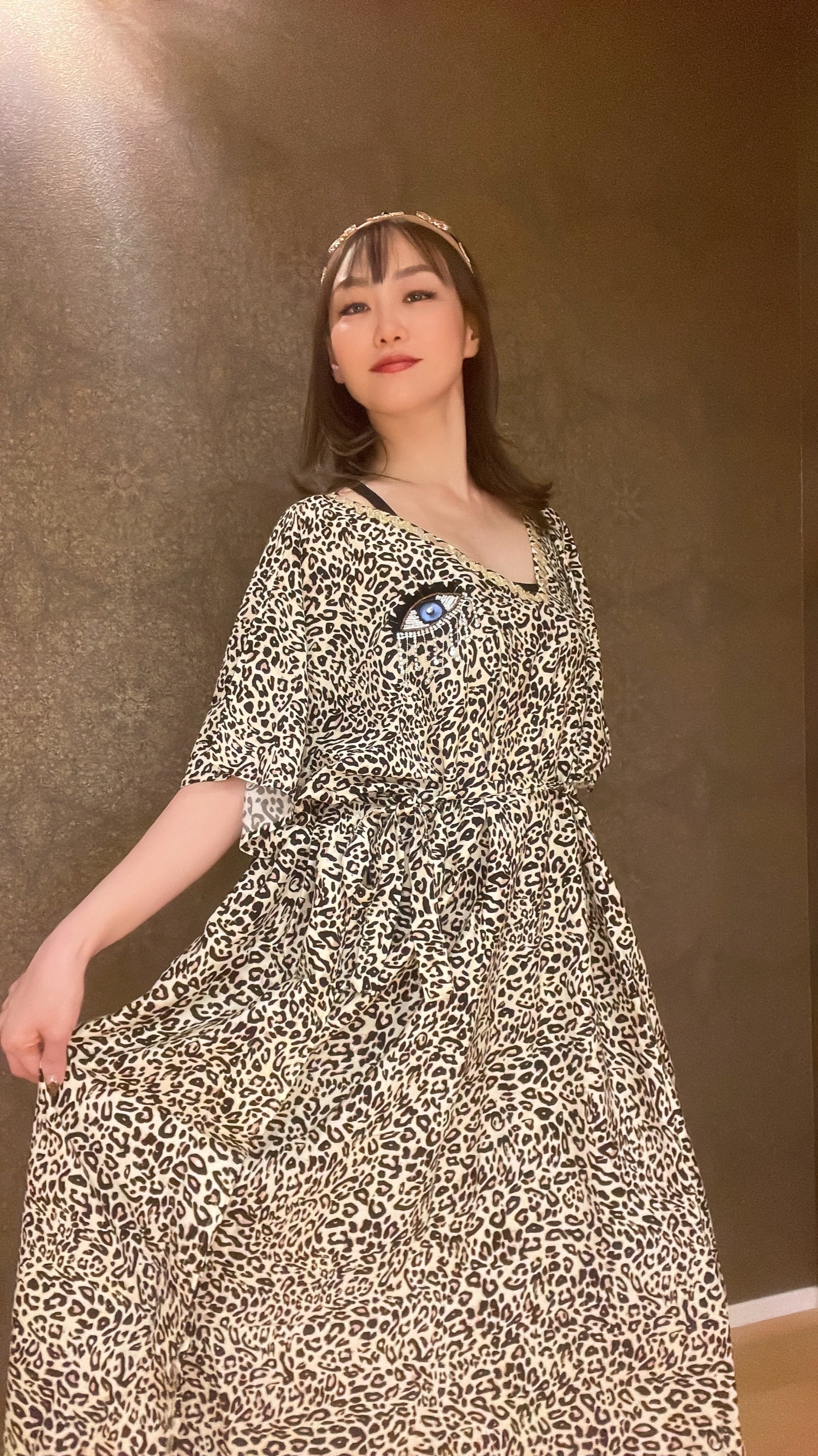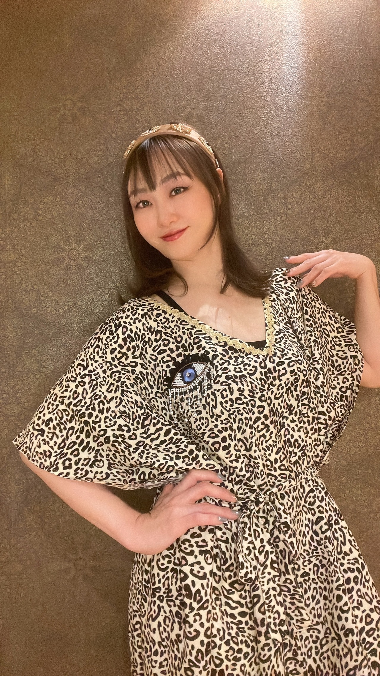 ヒョウ柄にキラキラビジューのお目目がついた