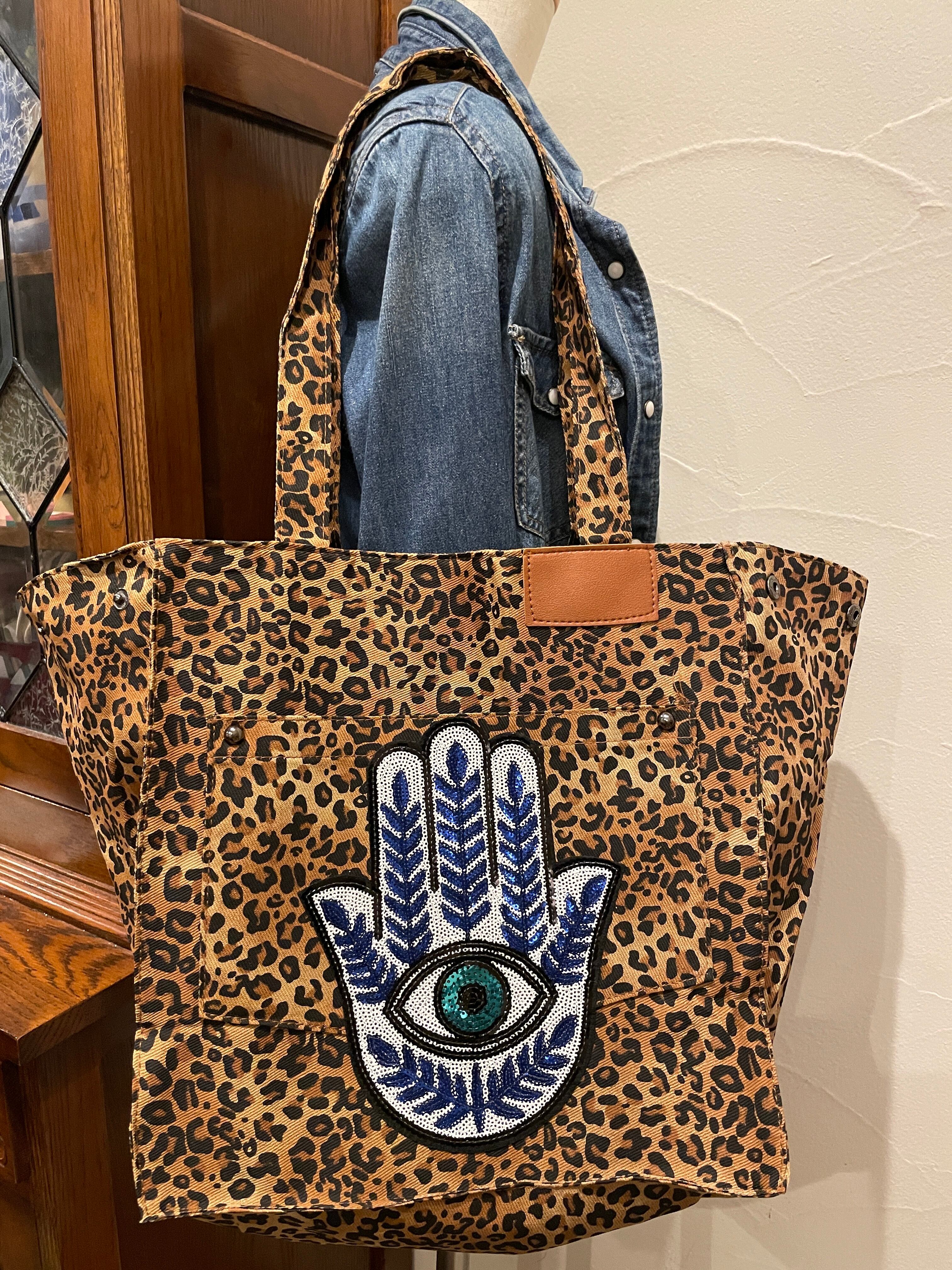 豹柄キャンバストートバッグ✖️ブルーハムサ