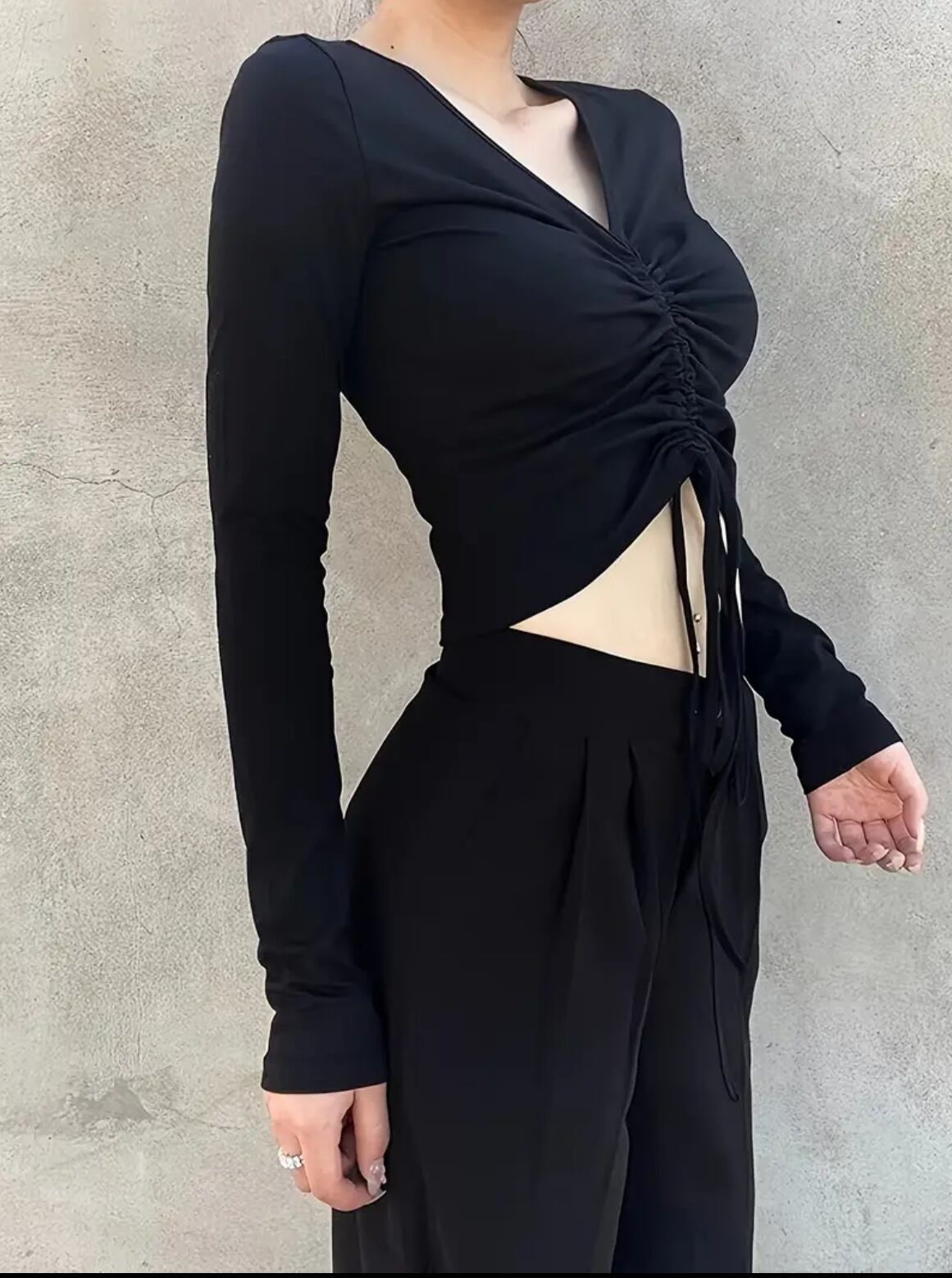 中央のシャーリングでお腹を見せても♡