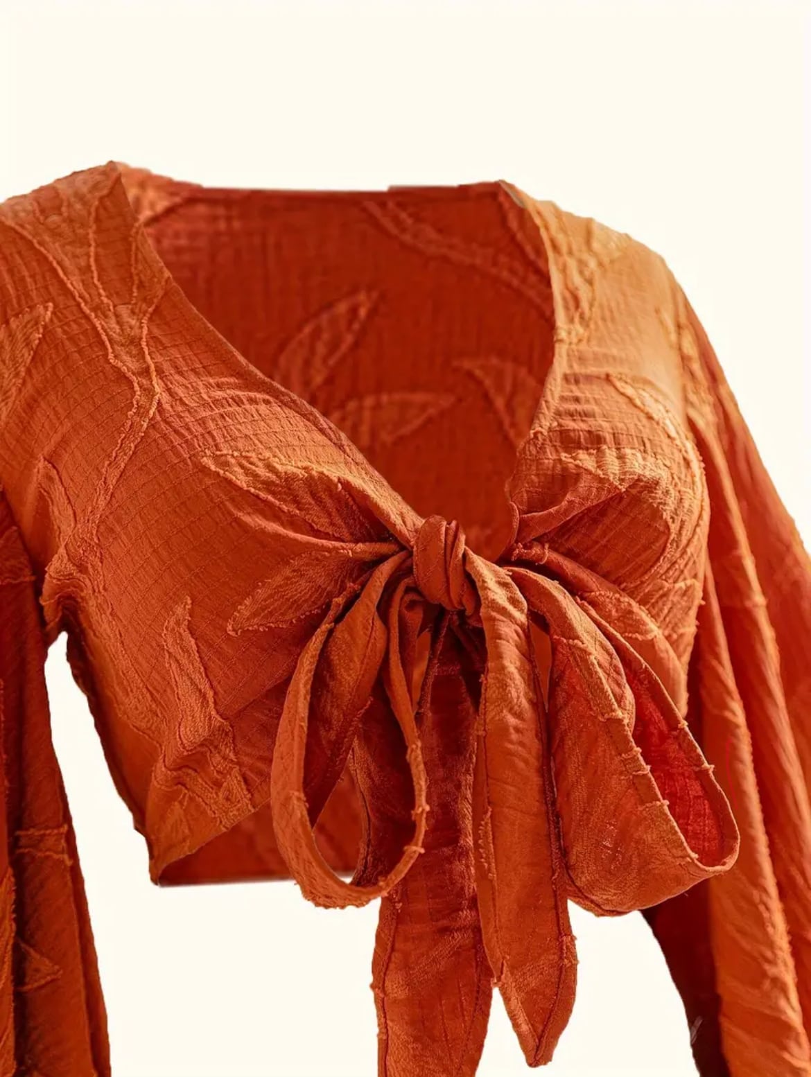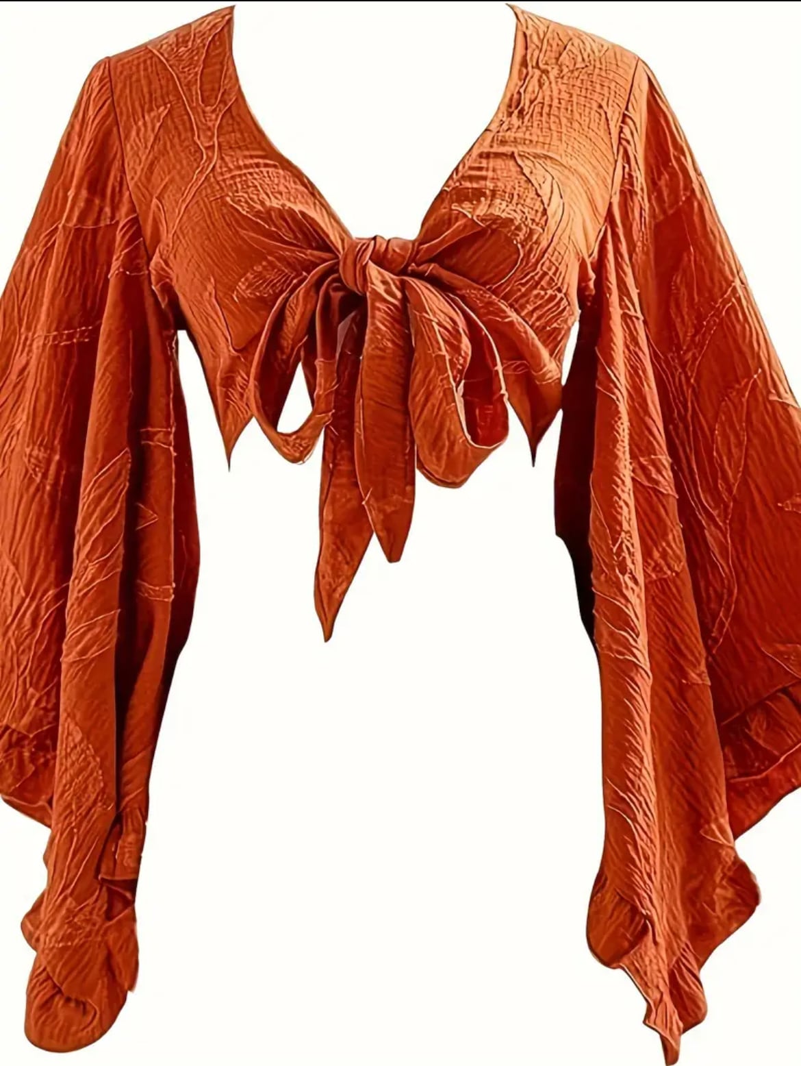 植物柄の生地が素敵なフレアスリーブチョリ✨