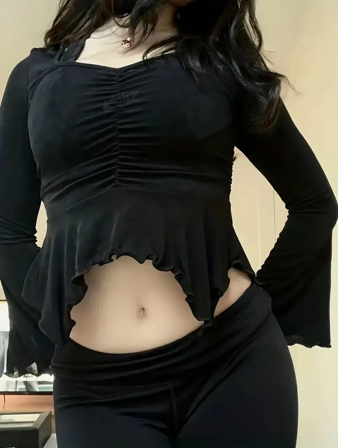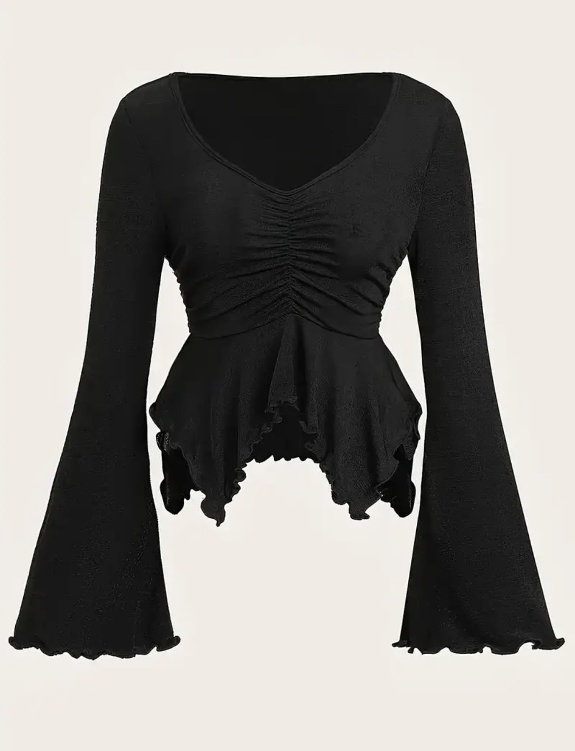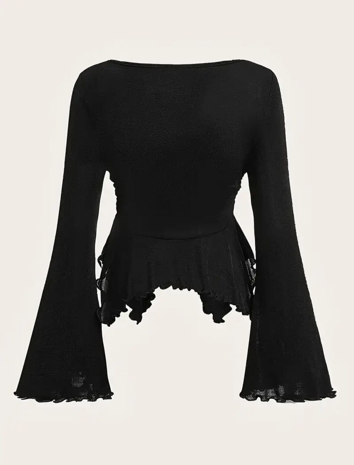 ベルスリーブや裾のヒラヒラが可愛いトップス。