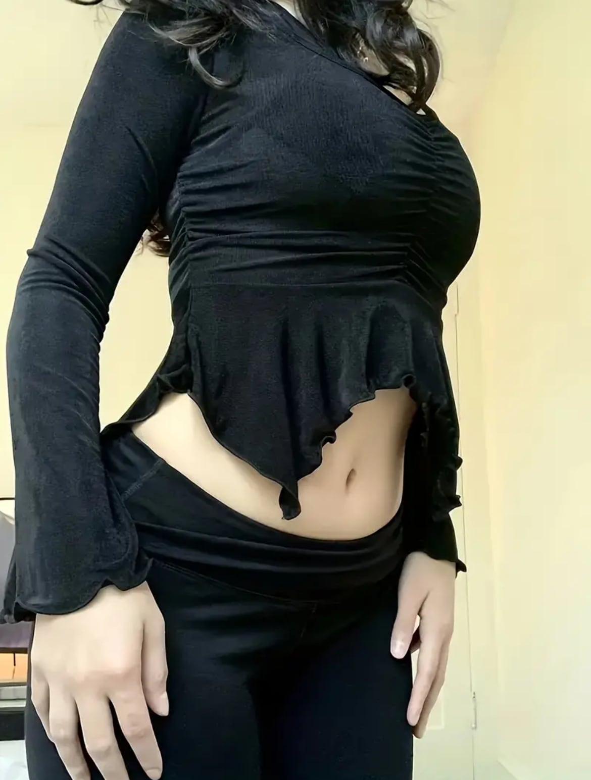 スリムフィットベルスリーブトップス