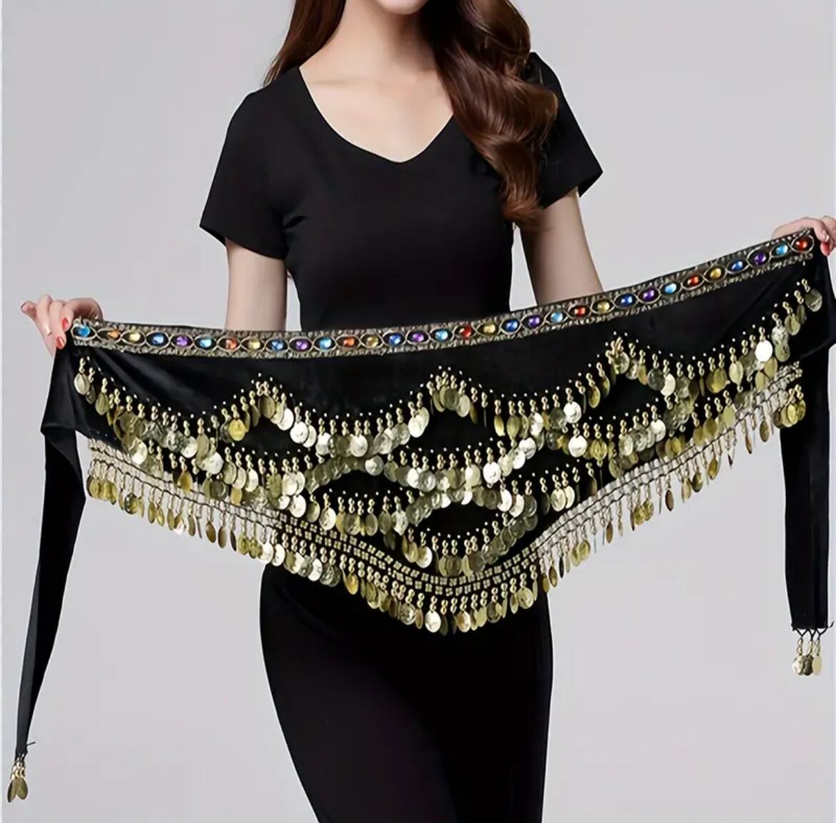コインがふんだんに縫い付けられたベロア生地のヒップスカーフ✨