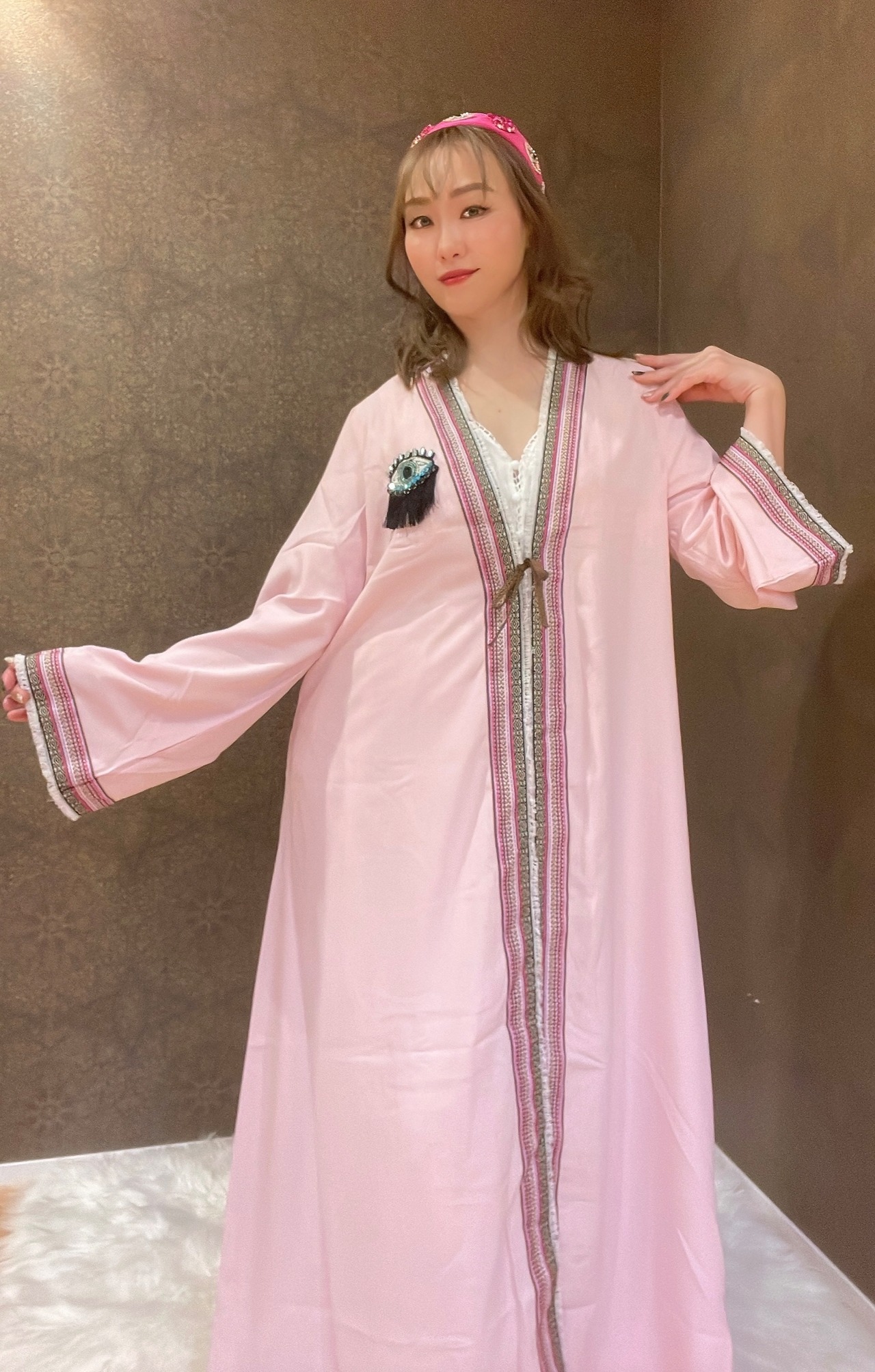 ボヘミアンな刺繍トリムが可愛いガラベーヤ