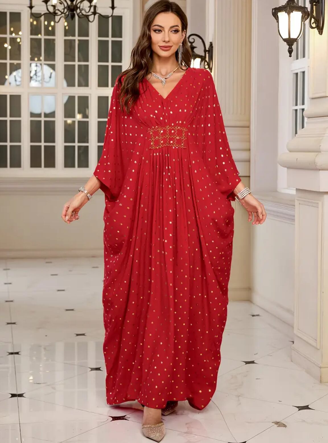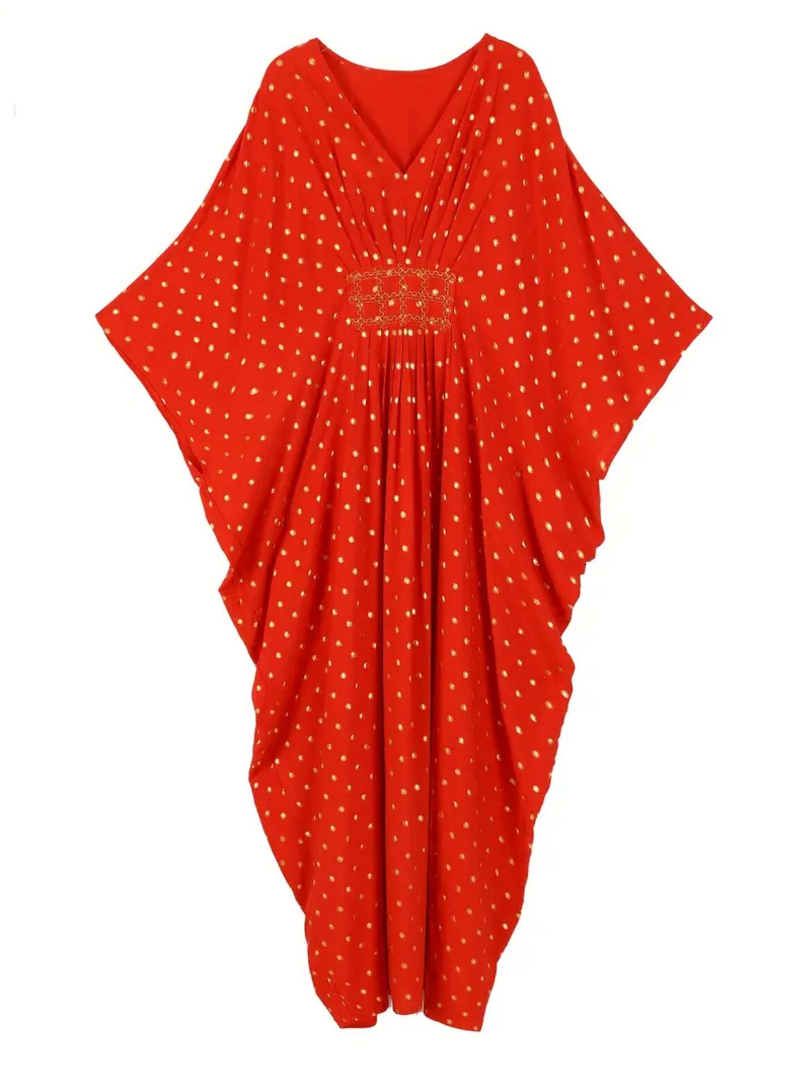 赤のポルカドット✖︎プリーツデザイン ガラベーヤ 取寄せ