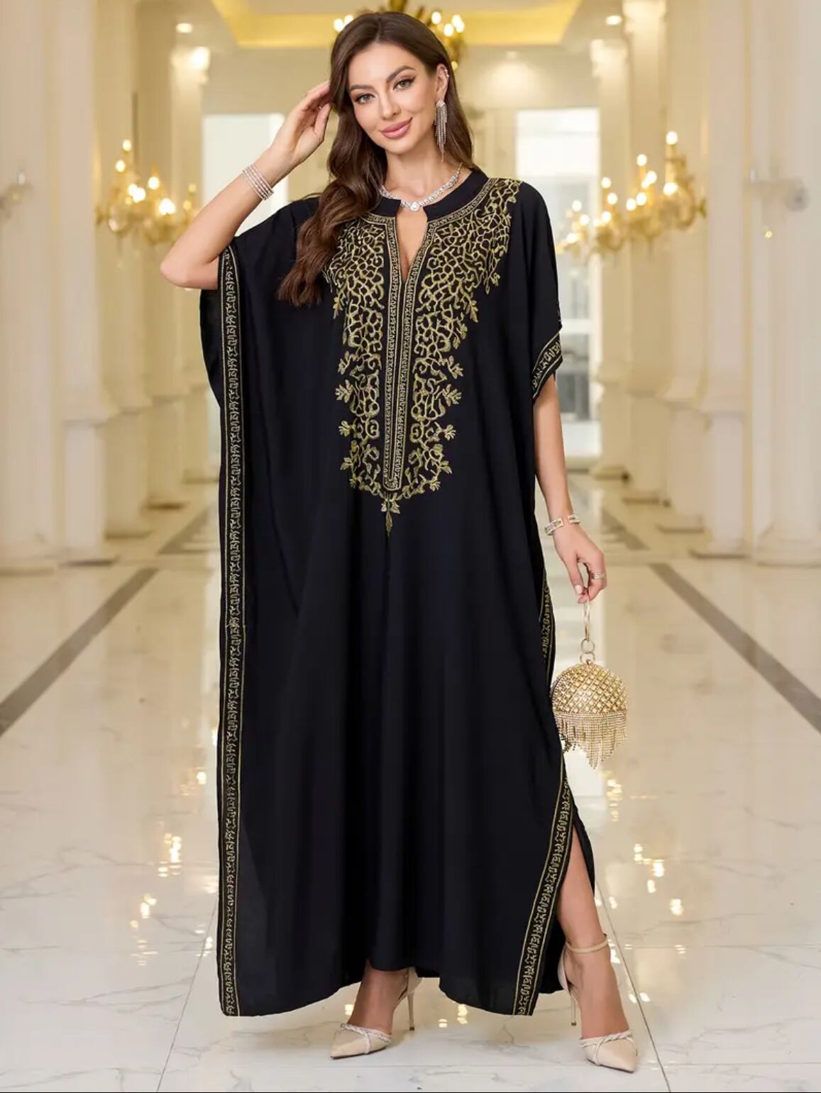 黒地にゴールド糸の刺繍が美しいガラベーヤ✨